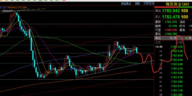 第一,黄金方面:昨日通过日线判断,价格仍坚守10均线上,则代表1770上支撑存在,加之整体的短趋势维持上涨多头,故1770上先看涨一波;整体欧盘虽只有几美金波幅,但走势上处于震荡慢上行,可持多等拉升,最终晚间成功上破;而1787一线处于50%分割阻力点,作为这几天震荡节奏来讲,每一个分割位置都会有一定的回调,反手看压制下跌,也刚好回踩1775一线支撑;