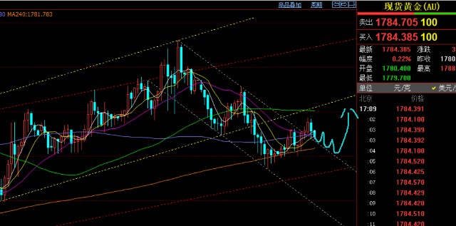 第一,黄金日线级别:昨日收阴回测,在四连阳形态后并未延续上攻,那么继续维持区间内多空整理,当前10均线支撑还未有效失守,年均线阻力同样承压,价格卡在1780-1800区间内运行,上下都没有很好的延续性,得借助消息刺激才能打破此僵局,今晚CPI通胀数据或是一个导火索,看上下的有效得失情况;整体来看,仍处于上行通道发展,只要守住上周低点1765一线,也是中轨处,那么“N”字拉升形态还会大可能延续,近期每次出现大幅持续上攻都是借助于消息面的刺激,今晚通胀公布值能否小于7.3预期,是非常关键的;若符合,则势必急拉上涨一波,届时站稳1800上方概率极大;反之,大于预期,则先出现急跌,然后再看尾盘能否再回补上行,类似本月非农的走法,若能则还会维持上涨势头,若不能则可能会扩大下跌调整力度,也就是1765若守不住,很容易又去试探1730-1740;