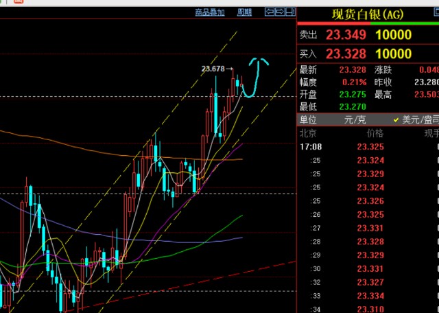 第二,白银方面:昨日指出23.2-23支撑延续看反弹,符合预期,只是力度不大,只给到23.52一线;