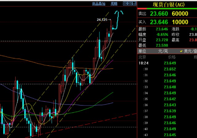 第二,白银方面:依托日线5均线上,顶底支撑23上方,也得到了不错的支撑买盘,一波拉升至最高24.2一线,离25短期目标也就不远了;