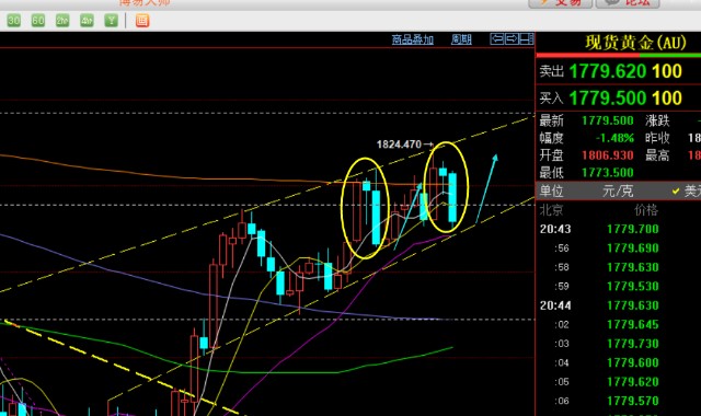 第三,黄金小时线级别:今日大幅度回测,亚盘和欧盘整体走的都弱,美盘可能还有二次走弱风险,但由于临近1771关键支撑点,也不宜直接看弱,反压通道线阻力1783-84,预计也是靠近10均线,这里若承压不上,或有二次下跌动能;而二次下跌之后,还无法失守1771,出现底部企稳形态的话,则后面就容易走震荡氏慢反弹过程;因此,小时线区间是关注1771-1784之间的得失,而拐点压力应该是1796-1798,欧盘开跌口;原本亚盘下挫后,计划1797-98承压空,但奈何点位略差而踏空;