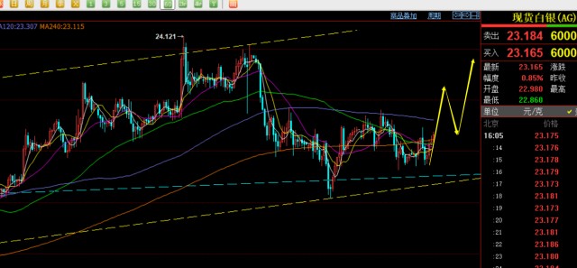 第二,白银方面:昨日提示23-22.75区域支撑符合预判,价格触及开始止跌反弹;