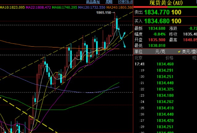 第一,黄金方面:昨日早盘先依托日线通道上轨回踩支撑1850逢低再测试看涨,但两次冲击1855都压制回落,小时线中轨开始承压,故提示1846-47直接出局,并反手看跌下行;路演中也提示1850及上方都可布局做空,最终美盘成功跳水至1830一线;