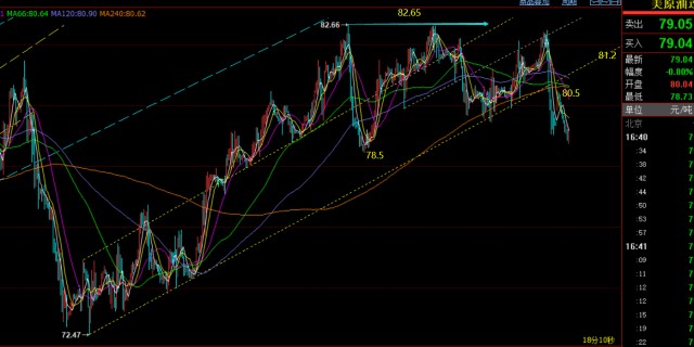 原油方面:周线级别,上周符合承压中轨和通道上轨共振处82.4回落收阴,本周有望再次测试分割支撑77,继续展开一定区间的盘整过程; 日线级别,今日通道下轨支撑有所刺破,一旦有效破掉中轨78.5,则终结上行通道发展,向下跌一波,继续维持宽幅区间运行,70上方或许还会试探,月线即将收官,若这两日下跌幅度不大的话,2月份原油大概率还会探底拉升;若这两日直接跌幅过大,导致月线下影线较短,则2月份还有概率击穿下70关口,68-66上再崛起一波拉升修正;而小时线级别,图中通道下轨隔夜大跌破位了,今日早间受周末利多消息刺激跳空高开,刚好进行一定反弹修正,那么依托382分割阻力80.3直接看跌,也容易回补缺口,并且先拉升破掉隔夜低点概率更大,更容易走弱续跌,现在一看,全在预期中进行;接下来以80.5开跌口作为防守,反抽接着看压制即可,关注78.5支撑,一旦有效破位则打开进一步下滑空间;