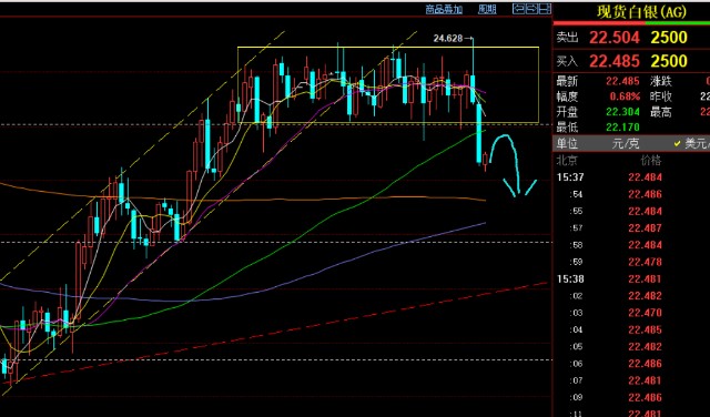 第二,白银方面:承压23.5也是直接瀑布,给不到24及上方布局做空机会;
