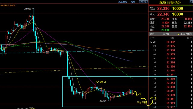 第二,白银方面:昨日文章指出日内小阻力22.6直接看弱延续,最低下探22.1拿下;