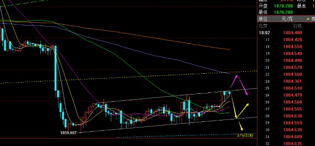 第三,黄金小时线级别:亚盘一路横盘承压凌晨1877一线高点,加之隔夜大阴打下来,短线原本是弱势的,但欧盘突然支撑1873急拉一波至1886,促使走势又陷入了底部多空争夺,也刚好又刺破了昨日高点,这种震荡不连续的短线扫盘走法是有些被动,和前两日不同的是突破时间点提前了,原以为要下去一波再看美盘是否企稳; 现在阻力点关注1886得失,支撑1878顶底位置,往上继续冲则可能会试探1896(618分割阻力),逼近1900一线本周关键阻力点,首次试探还是要敢于高空一次,毕竟日线和周线有顶部形态迹象;而往下破支撑,则继续先底部区间整理,下轨支撑1870-1868,这里去看是否又撑住;当然,存在刺破回落的可能,震荡反复行情中容易出现,也是相对恶心的一种;