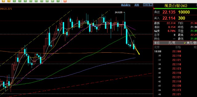 第二,白银方面:同样的,强调一点,只要不突破22.65关键阻力节点,仍处于底部弱势震荡运行,修正周期一到,延续一波续跌,击穿22支撑,最低下探21.8,看跌成功;