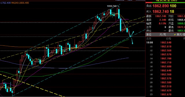 第一,黄金方面: 周三和周四文章中都强调了一点,当一波行情大跌破位后,底部修正的极限周期一般是三日,之后就容易再续跌一波,而周一至周三,日K线都是冲高回落长上影,上方阻力承压是较为明显的,周四就加大了下破概率,1890一线刚好是周初运行通道的上轨,顺利触及一波跳水有效失守1873通道下轨,得以延续至今日1852一线低位,布局做空思路就比较成功;
