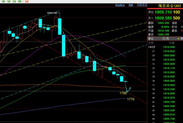 第一,黄金方面:上周四隔夜冲高走弱,周五依托小时线中轨1826循环看跌压制,欧盘连跌下跌破底成功拿下,而失守通道下轨位置1816一线,即提出1815下弱势继续看跌,由于后半夜没波幅了,又不想隔周末,规避风险,提示1815下保本出;