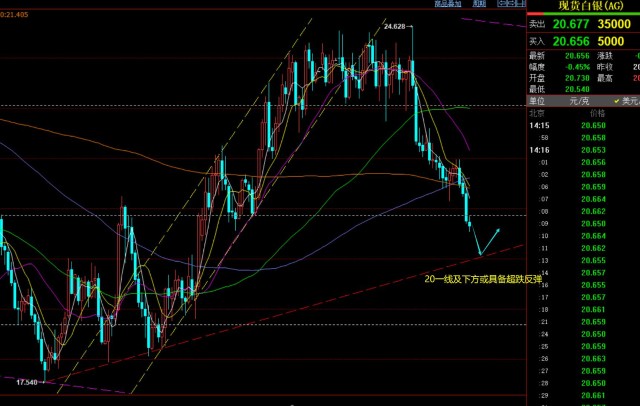 第二,白银方面:走弱形态比黄金较为明显,可以说上周后续几日展开了弱势的单边加速走法,21.4下提出继续看跌,只空不多思路,最终20.85目标顺利抵达;