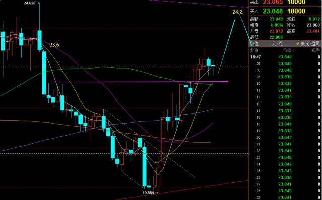 第二,白银方面:昨日价格运行于22.75支撑上方运行不变;