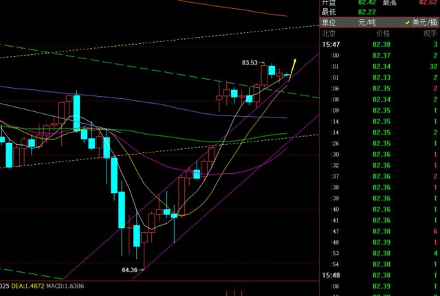 原油方面:前期的下跌通道上轨已经被突破站上,且处于短期上涨通道上轨之上运行,也是10日支撑上,那么本周初还得继续看涨,关注82上下附近支撑,企稳看涨,阻力83-83.1,突破站上看85.5月线中轨;另外隔夜低点81.6下作为风水岭支撑,判断对错;