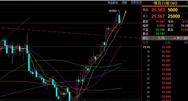 第二,白银方面:但黄金到位1994一线关键点的同时,就是白银入场跟多的时机,25.2一线提示看涨,当前盈利中,此位置也可以同步作为一定波段持仓;