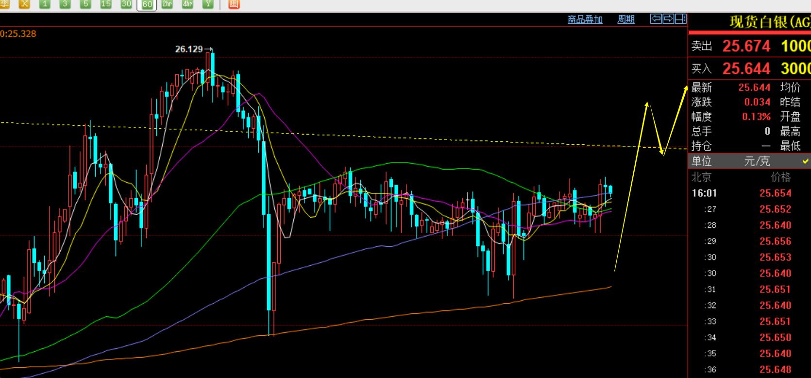 第二,白银方面:昨日窄幅运行于25.6-25.3之间,符合给出的区间;
