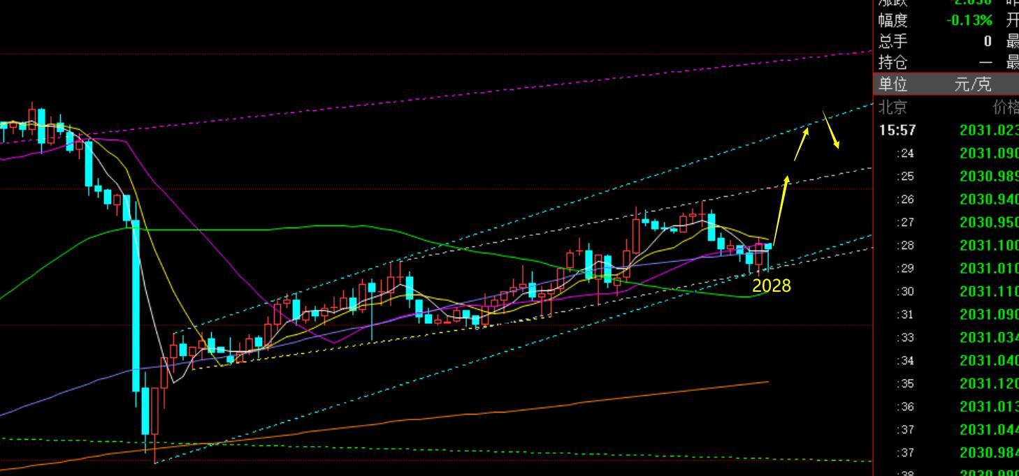 第二,黄金4小时级别:昨日后半夜突破站上中轨,今日回踩确认中轨2028一线初步有一定支撑,关注它的得失情况,若能守住再次拉升突破隔夜2038高点,那么中轨支撑就有效;