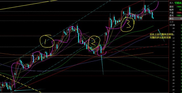 第三,黄金小时线级别:早间反弹承压1993,午后压制下行,当前刺破了隔夜低点1986;虽短趋势多头改变还早,但针对日内走势是的确处于下跌中,比较弱,而同时macd步入底背离,也不好低位看跌,至少确认下2000关口及上方才好敢于看压制;2000-2002顶底位置迟早也会去试探确认,能给到机会再择机看承压震荡;那么此时低位就只能耐心等待1970-1980前期密集支撑点的企稳看反弹;