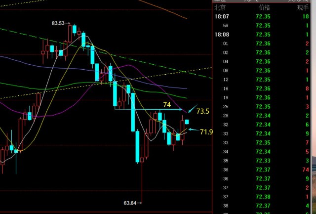 第三,原油方面:亚盘依托71仍继续看跌,抵达70一线目标;美盘承压通道上轨阻力71.3下再次试探空,但发现21点收线探底拉升不利,突破上轨通道阻力后,提前调仓出局,感觉这次要突破71.9节点压力,结果后半夜真的上去了;