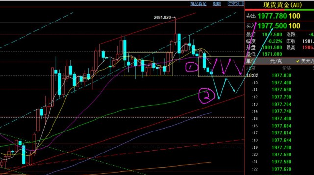 第一,黄金日线级别:本周二的大阴形态出现开始,短期思路就开始不符合之前的推演; 原本是认为当时区间会锁定在2040-2000之间进行反复盘整,即便下破2000,延续性也不会太大,极限试探下1982上,不会去失守1970前低;但目前走势而言,显然是发生了一些判断错误,不仅大阴失守2000,还直接弱势震荡续跌,即将试探1970关口;虽然昨日研报中,详细解读了当下短趋势仍处于多头范围,但连续几天的日内弱势的确不利于企稳看涨,那么对于笔者近期趋势看涨为主来讲,入场就有些棘手,最希望看到的是能出现一个箱体区间整理,类似4月中旬1970-2010之间,那样会通过时间换空间来转换指标切入看涨信号,当时即便是区间内震荡反复,也是一直强调回踩看涨为主,最终成功大涨至2080高位,坚持而取得大幅的利润;那么这次再次考验1970一线能否稳住是首要关注的,中轨和10均线阻力下移至2010-2005区间,若能稳住1970,那么新的震荡区间会锁定1970-2010之间,就同步循环4月中旬那次,只要能坚持数日不失守1970,最终就能来一波爆发式拉升;当然,因为今晚、明晚以及下周一,下周二晚间还有多次美联储官员讲话,这些都是作为不确定因素,美元这几日的逐步拉升,主要就是他们讲话鹰派导致,从而打压了金价;所以也要做好二手准备: 一旦守不住1970,会向下扩大调整试探66日均线1950一线,而强支撑应该在1930上下位置,3月21日低点1934一线大概率会稳住多头趋势,届时对应macd也会零轴下方修复完毕,再进行转向金叉酝酿一波趋势上涨; 因此,从日线后市判断,要么1970-2010之间震荡反复运行多日后趋势多头上拉;要么向下短期延续调整至1950-1930再企稳趋势多头上拉;