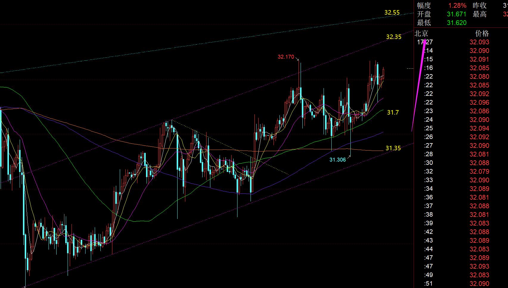 第二,白银方面:昨日黄金是震荡强势逼空逐步上扬,低点慢上移,相对好把握,而白银美盘期间,却出现一波回测,刺破了日内低点,然后出现又出现长下影K,二次布局看涨,挽回日内损失;因为只要黄金处于拉升阶段,白银即便出现幅度过大走势,最终也依然会V回去,今日果然又试探了32.2一线阻力目标;