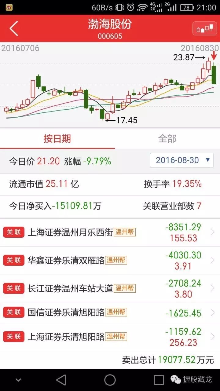 3、庄股渤海股份崩了,崩的那么彻底,那么灿烂。温州帮可能弃庄了,也可能是想洗出你们这些狗日的跟庄的。