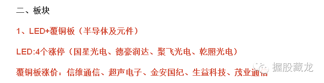 9.6日晚上直播的时候我推荐了覆铜板的3个股和通信概念的1个股,当晚直播的原话是:生益科技短期涨幅过高,有回调需求,可以在信维通信、超声电子和金安国纪里三选一,另外通信概念股茂业通信也可以选。然后9.7日凌晨发了复盘文章,见下图: