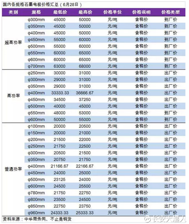 10、截止6.28日的石墨电极价格