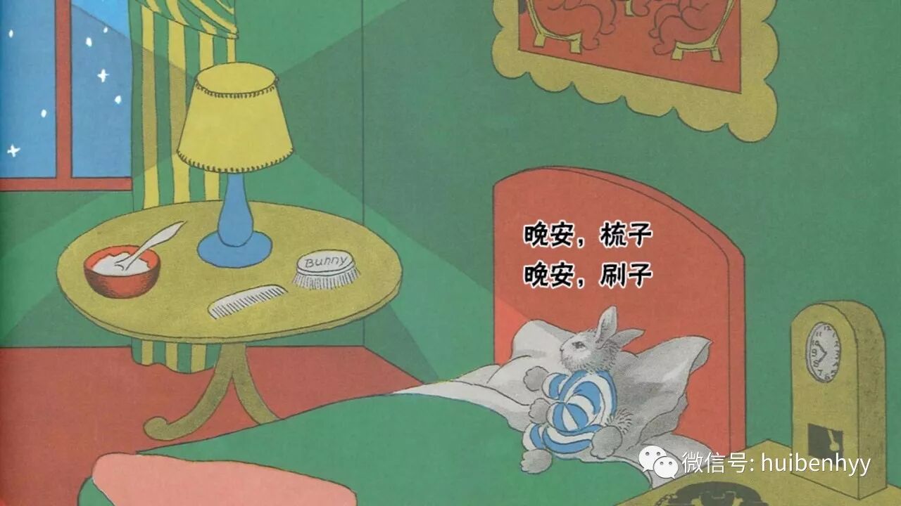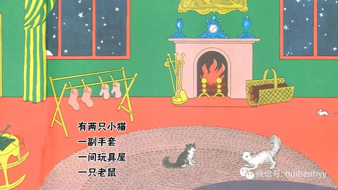 由于故事内容很简单,1岁以前的孩子就可以与家长有着很好的「互动」,这个时候故事中小兔子对家中的每一个物品说晚安,说晚安的过程也是认知的过程,孩子在听故事时,配合画面就知道了月亮什么样子,小猫、小老鼠、小房子、五指手套等等这些都是什么样子,这不就是认知、学习的过程么?