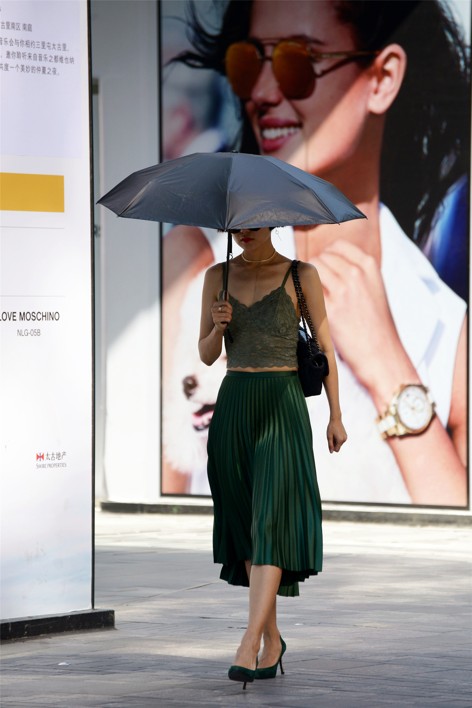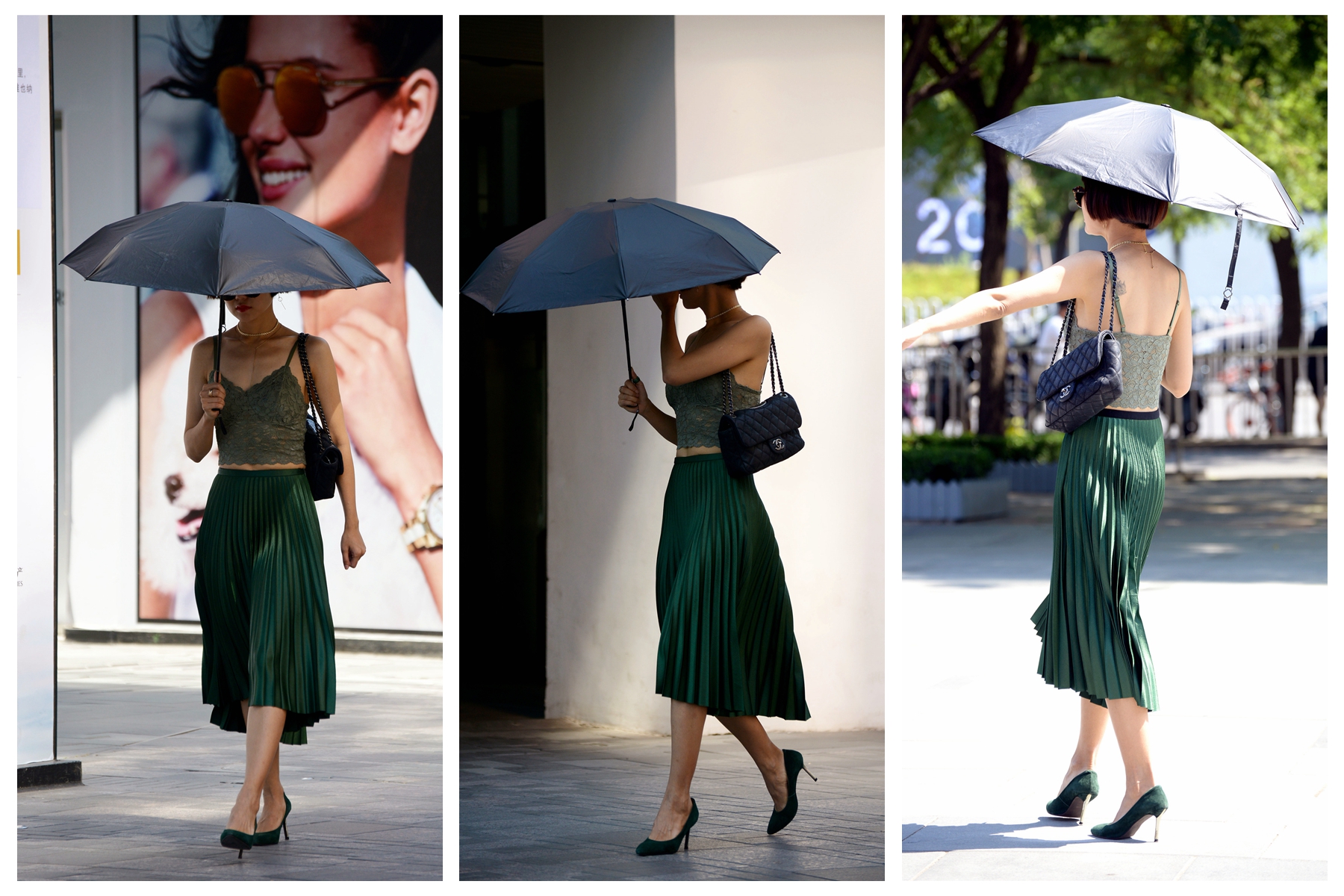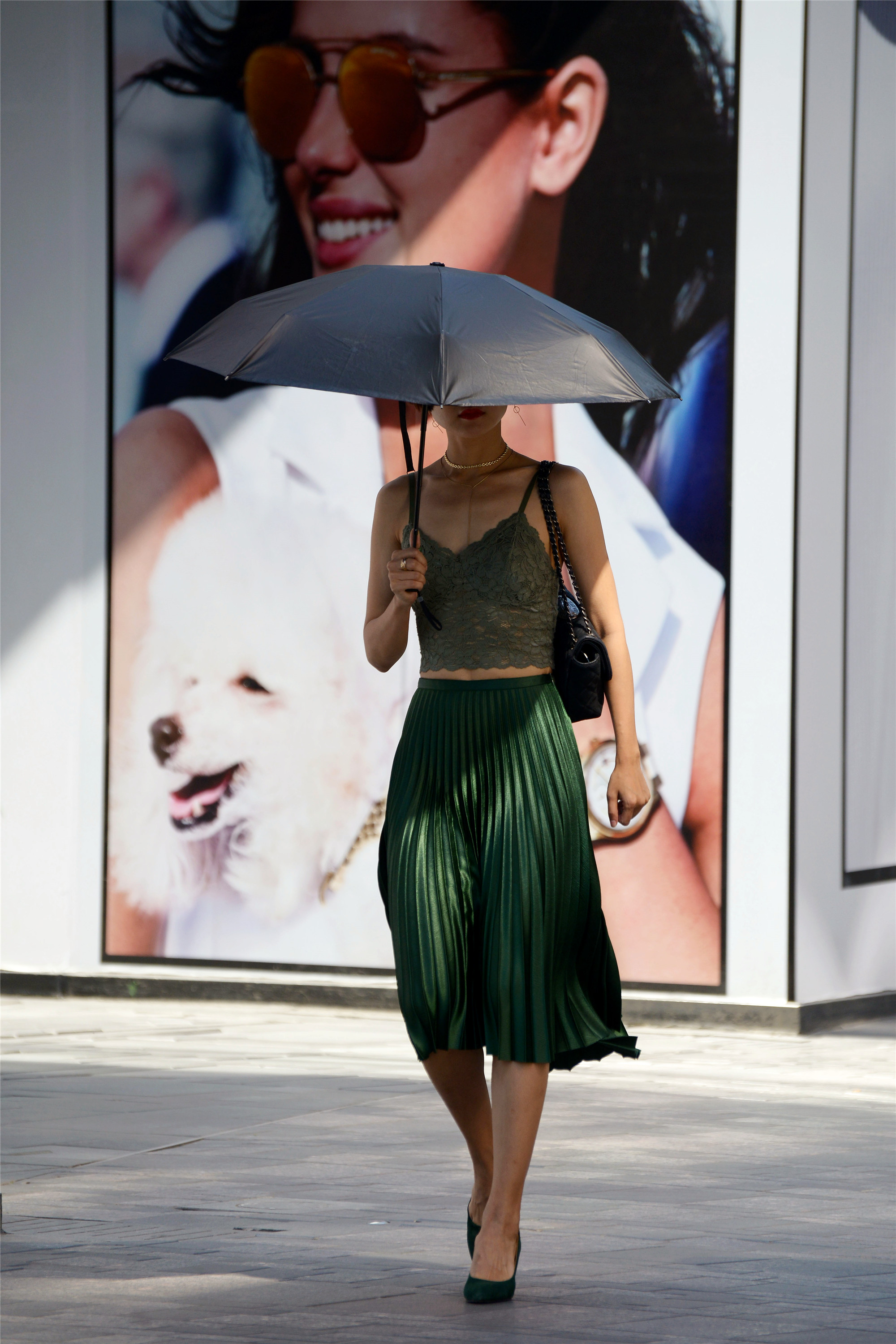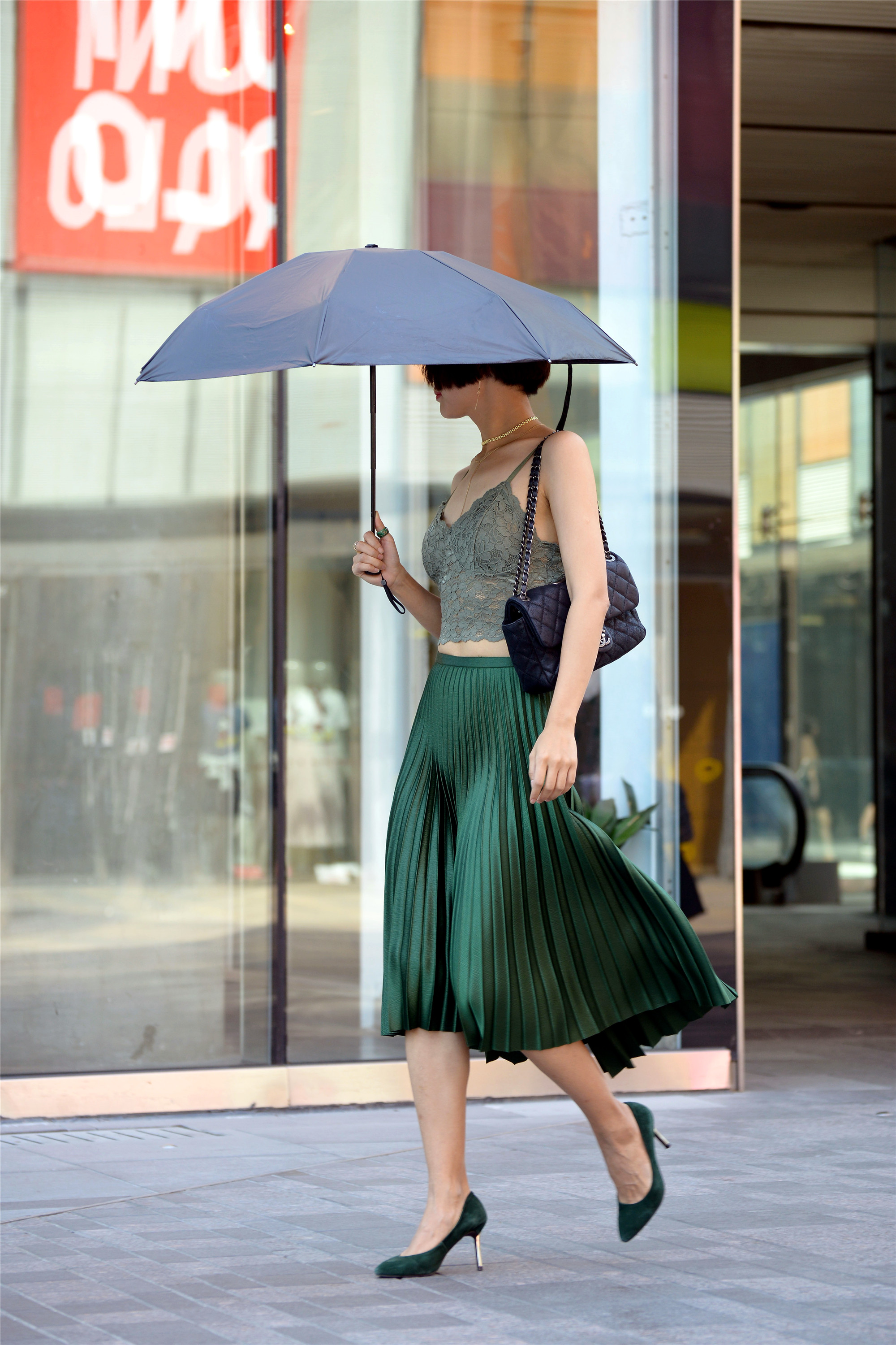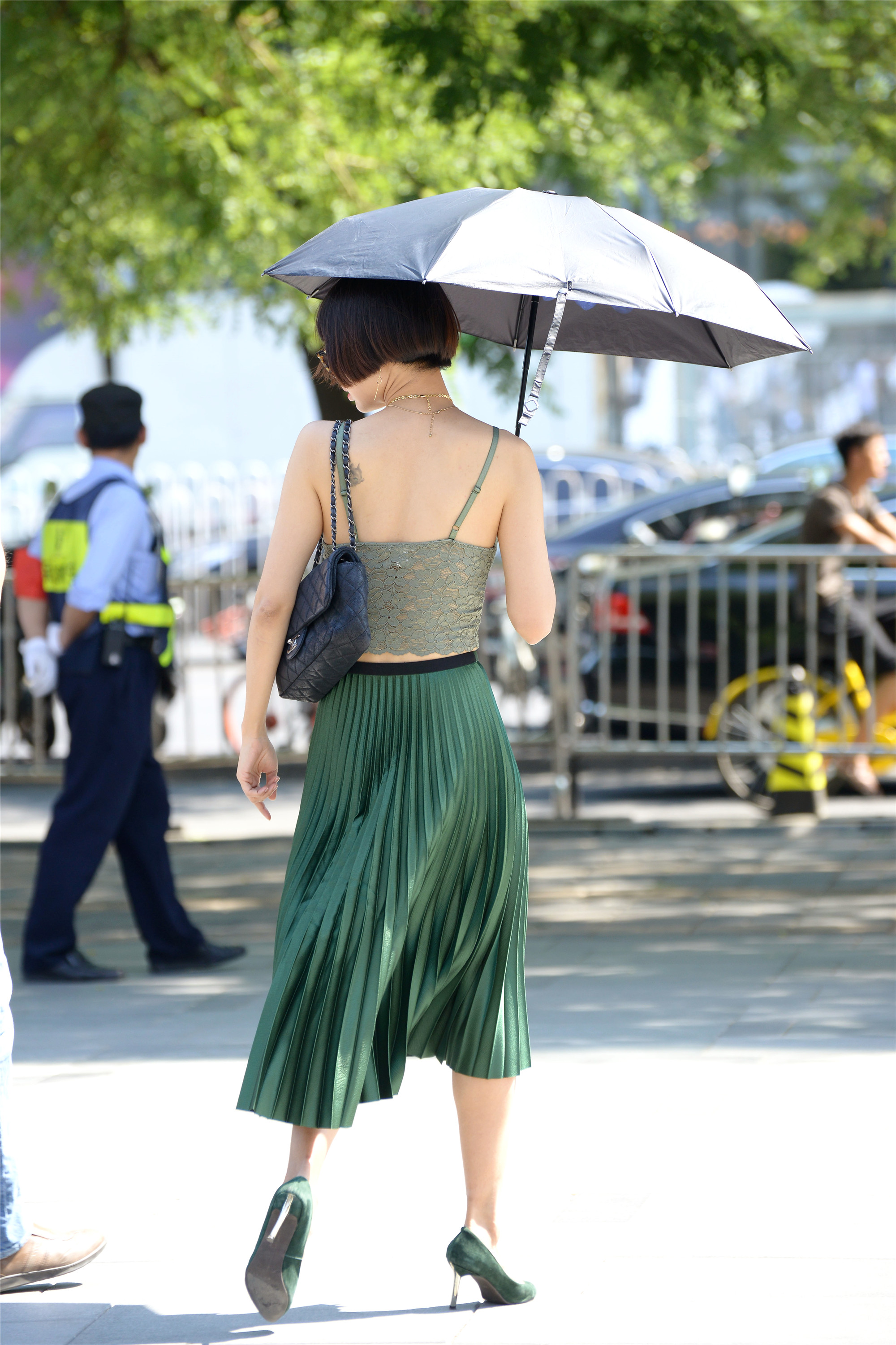 这位姐姐走了一路都在撑着这把阳伞,一直看不到她的样子,但是看着这简单却又漂亮的搭配,就感觉到她一定拥有精致的容颜,而且短发还很会搭配的姑娘,一般都是很漂亮的,也很会搭配自己的服装。