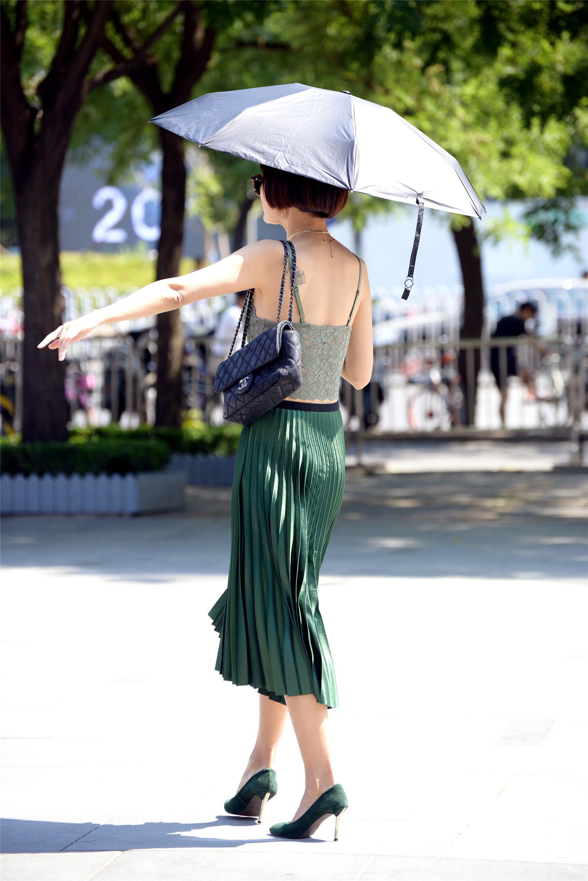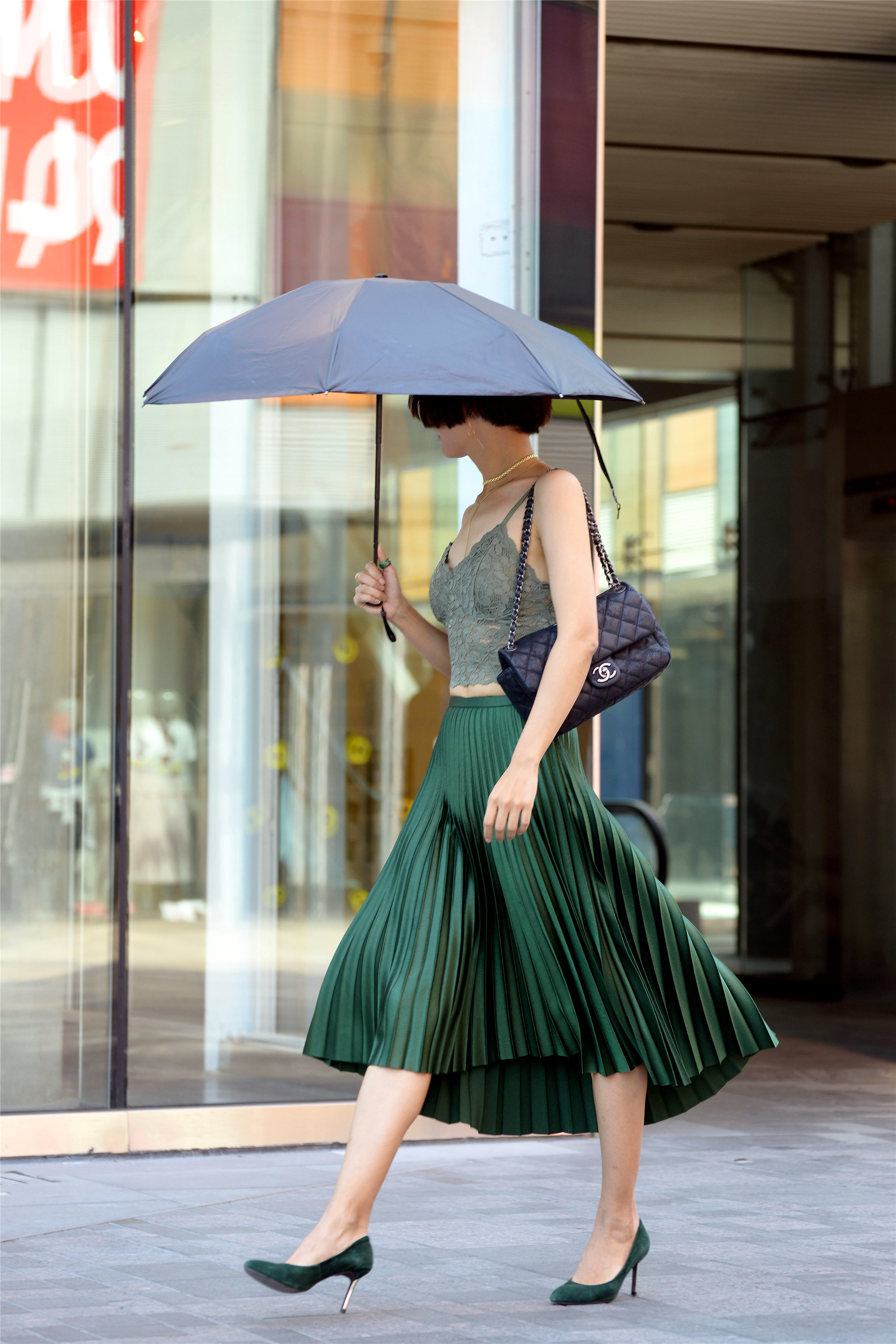 小姐姐的这一身搭配,非常简约,看着也是很简单,但是仔细看的时候,却发现处处都是搭配到了妙处,一件高腰的绿色压着裙子,不仅会走路会生风,还让她的身材比例看起来会更好一些,会显腿更修长,而她的吊带更是有着让你看着身材会更短的感觉,这样简单的搭配,却秀出非常完美的比例身材,而且上衣和裙子有形成了松紧搭配有度的效果。