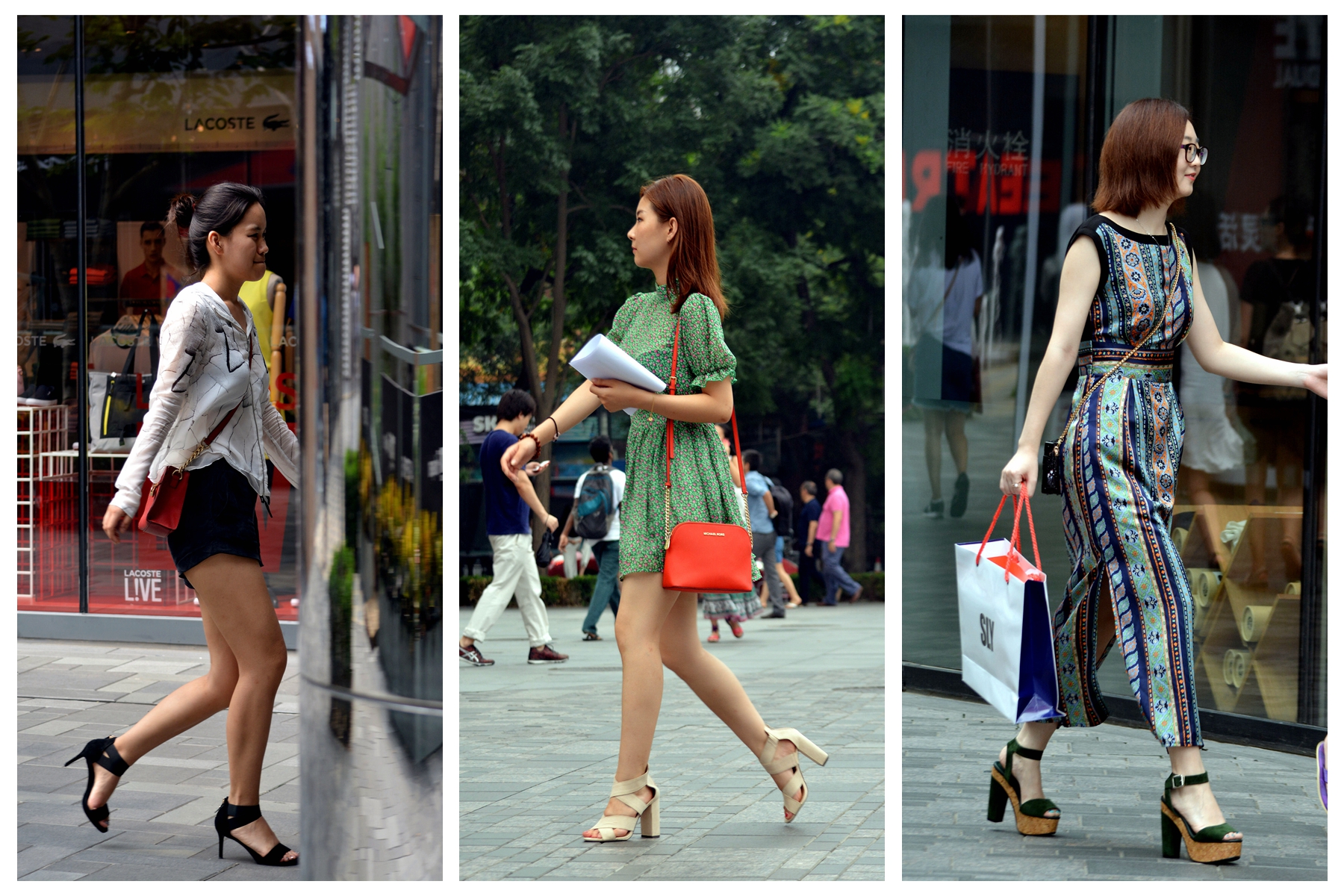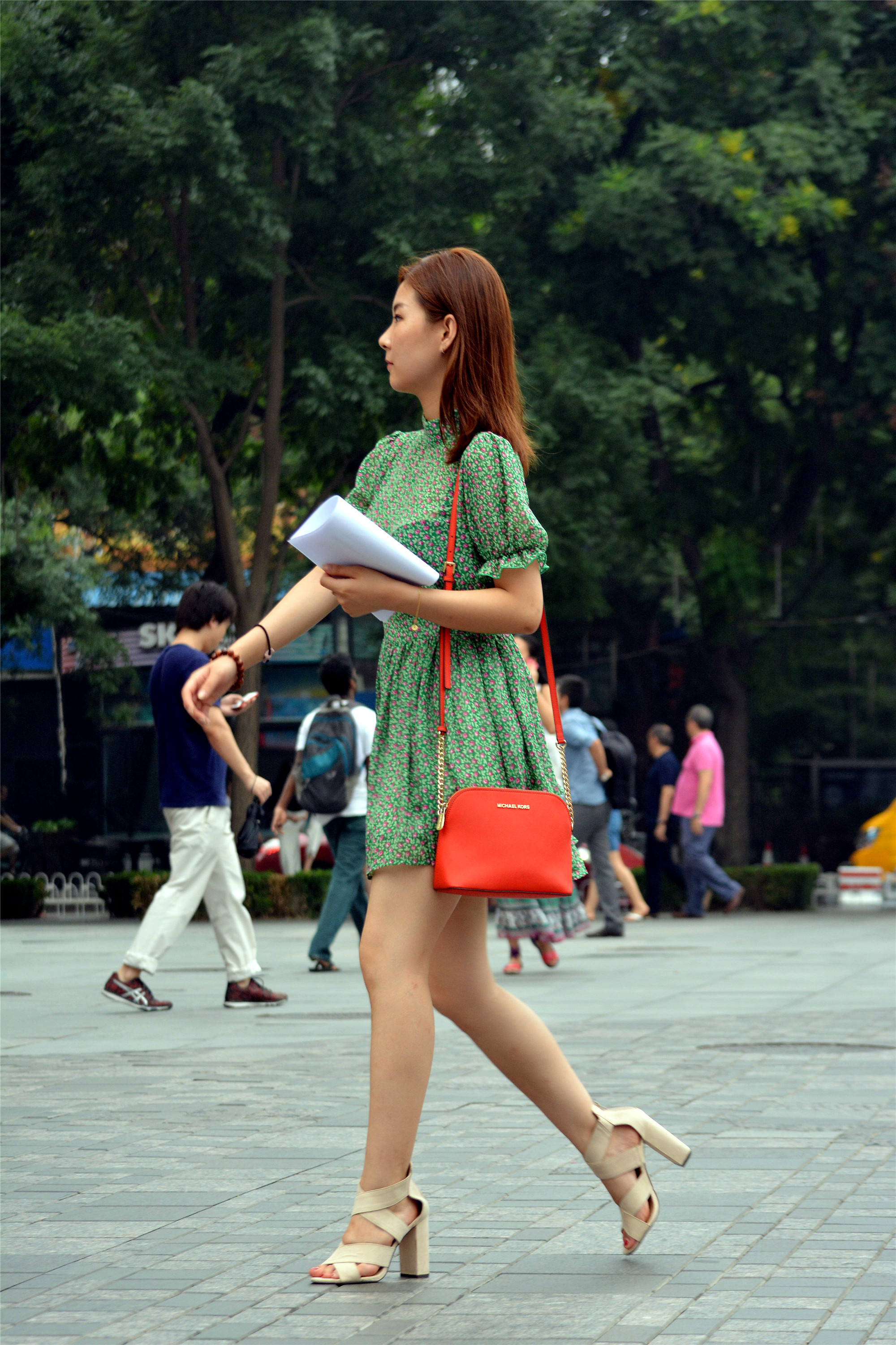 高跟鞋,不在于鞋跟的粗细,如果能够展示优美的弧度,并且与身材和服装搭配起来,这样看着就很舒服,也会感觉很漂亮,当然最重要的还是形体,这位姐姐绿色的碎花连衣裙,搭配一双方根的凉鞋,交叉带很有个性,身材高挑挺拔,很显气质。