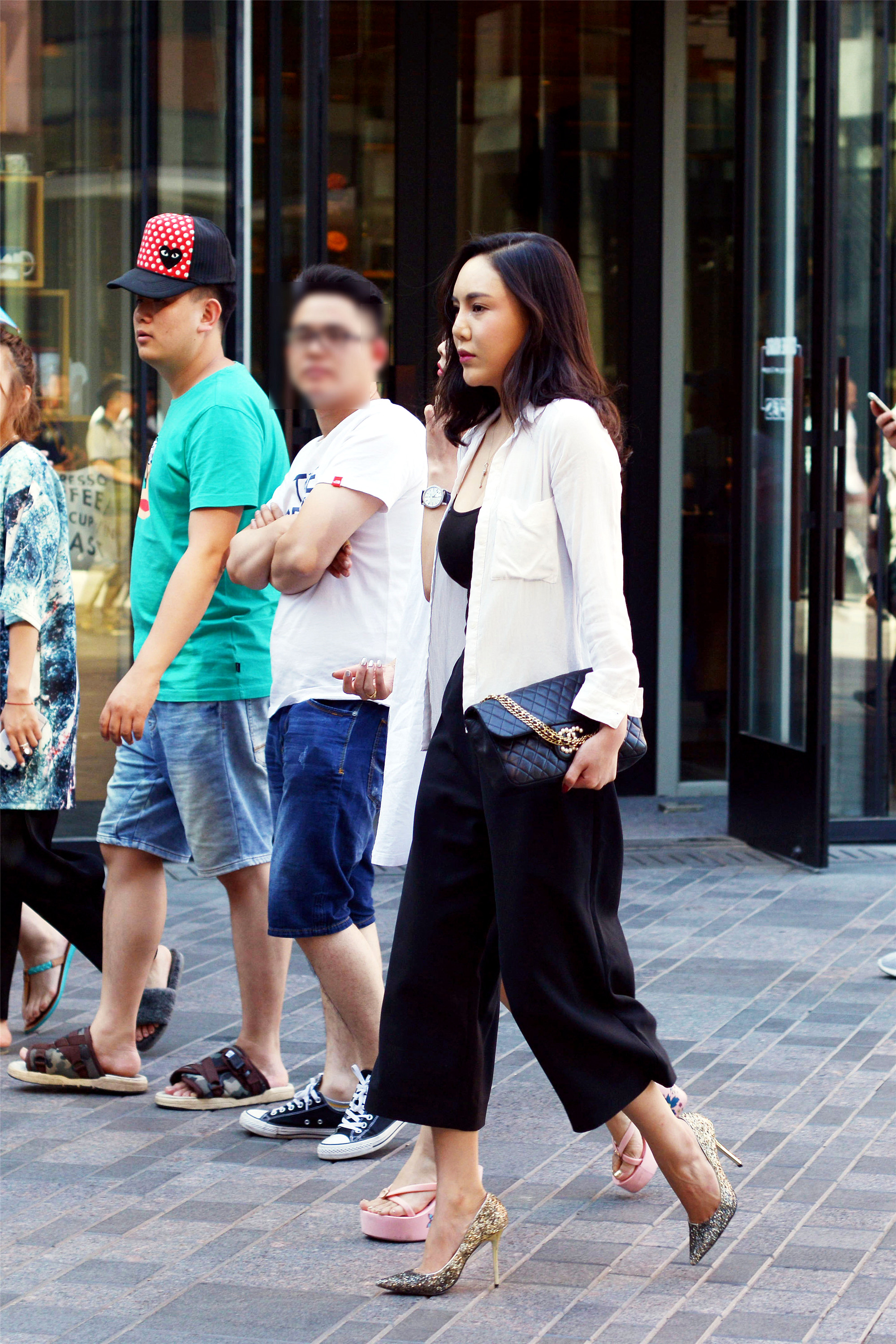 黑与白的搭配,经典又容易上手,如果你不知道怎么搭配,就先从黑白色搭配开始,慢慢招待适合自己的风格,小姐姐一件白色小上衣,长袖和收腰部分却形成一个很好的比例感觉,一件黑色七分裤,雪纺面料垂性很好,走路会带风感觉,也会显的小腿部分纤细,一双彩色水钻尖头细跟鞋,将她衬托的更有气质。