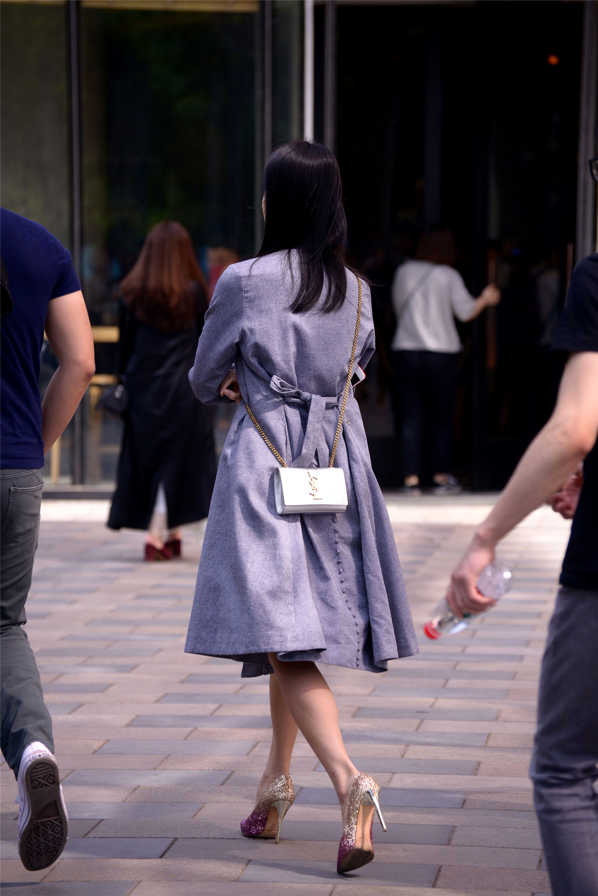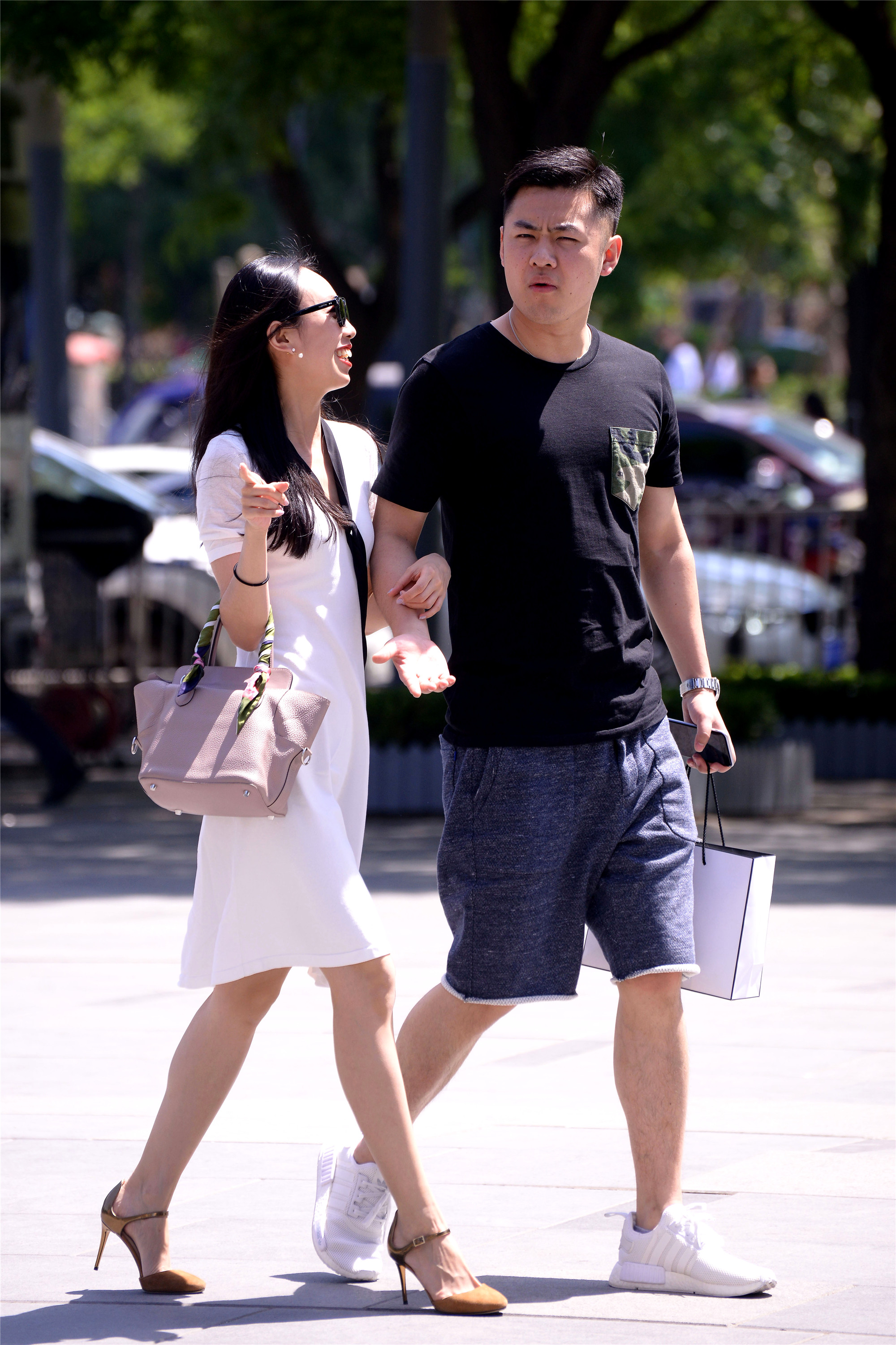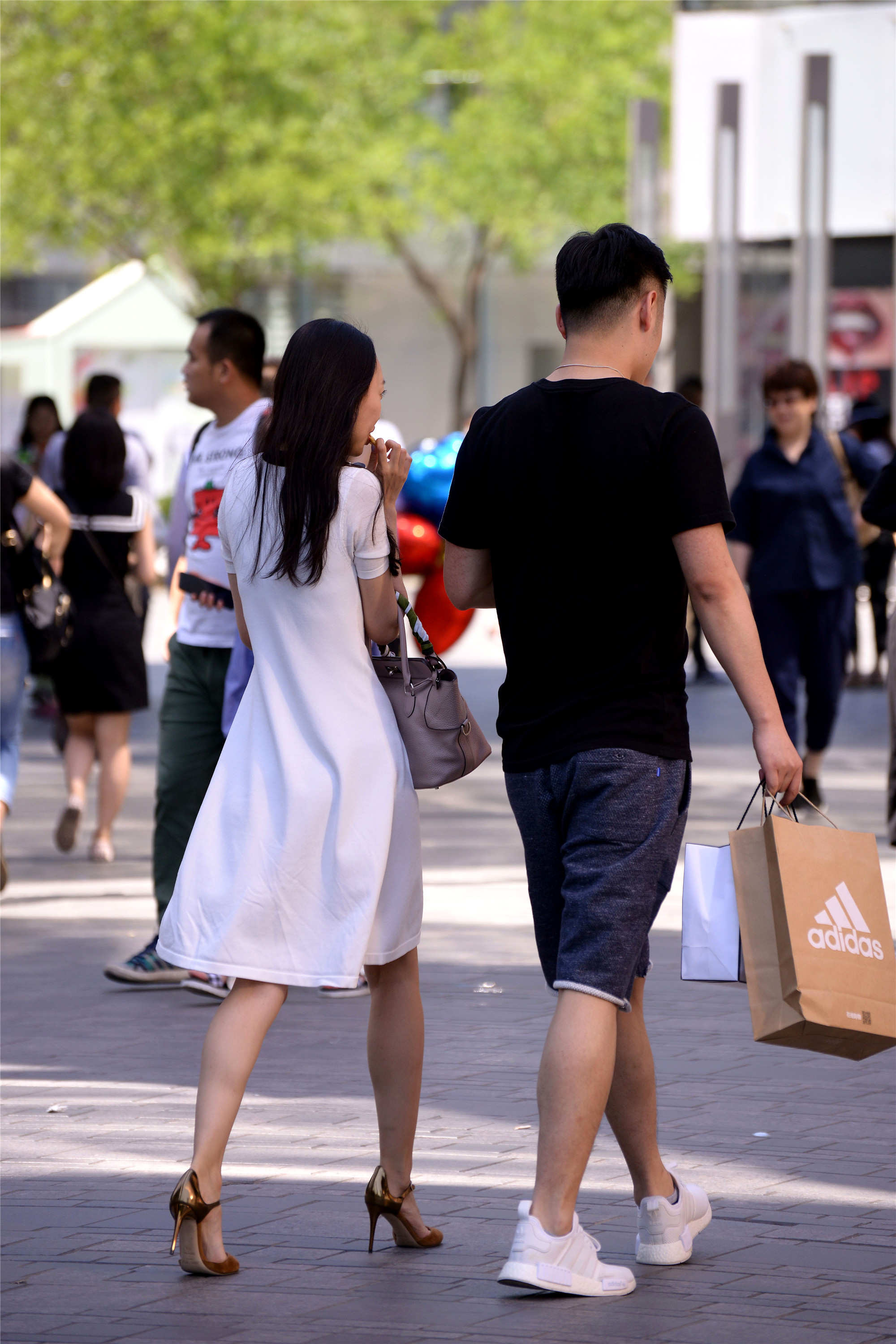 穿着尖头细跟鞋逛街虽然回累,但是有暖男在身边陪伴,还有购物袋可以放在暖男那边,这样逛街的热情立马升高了不少。