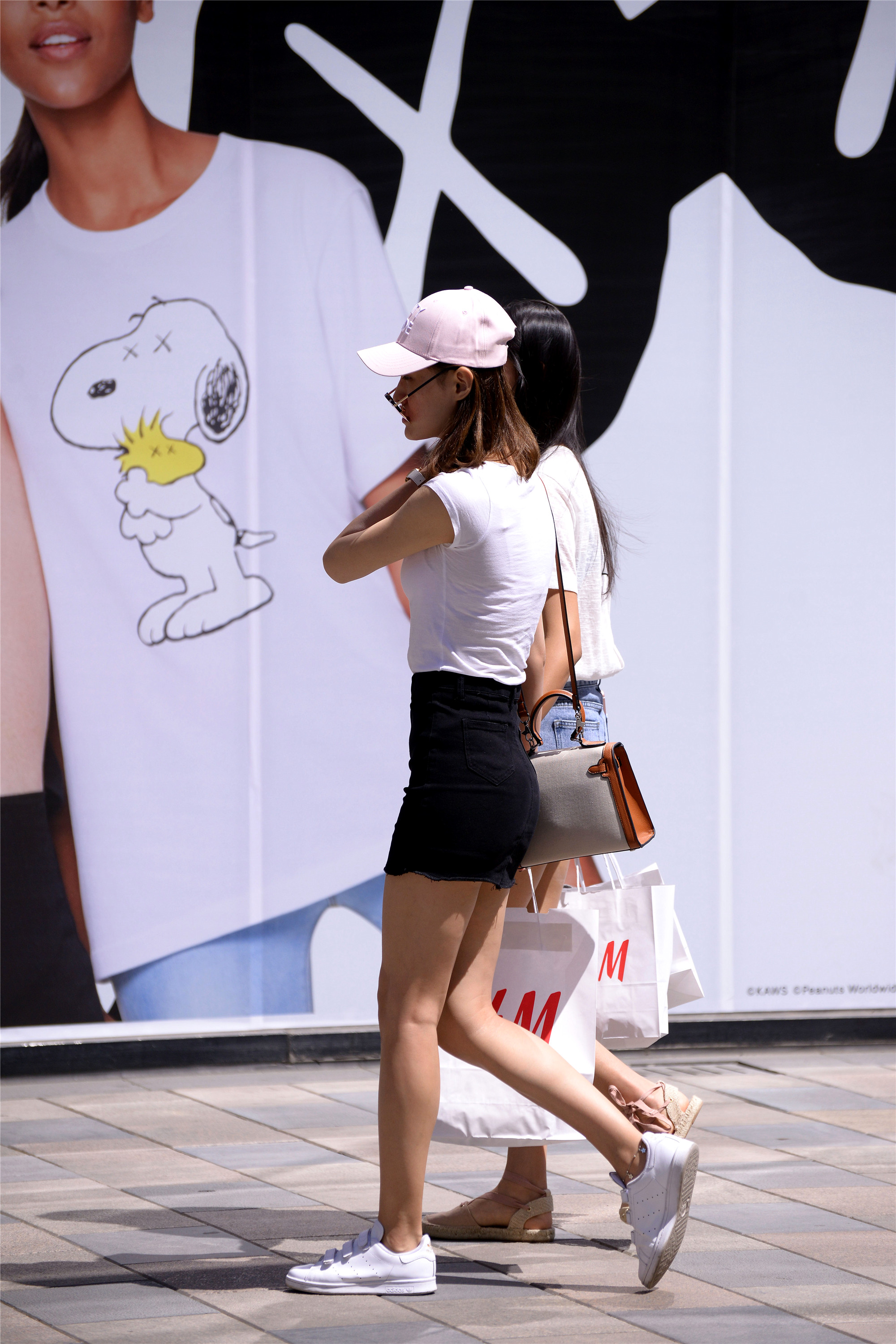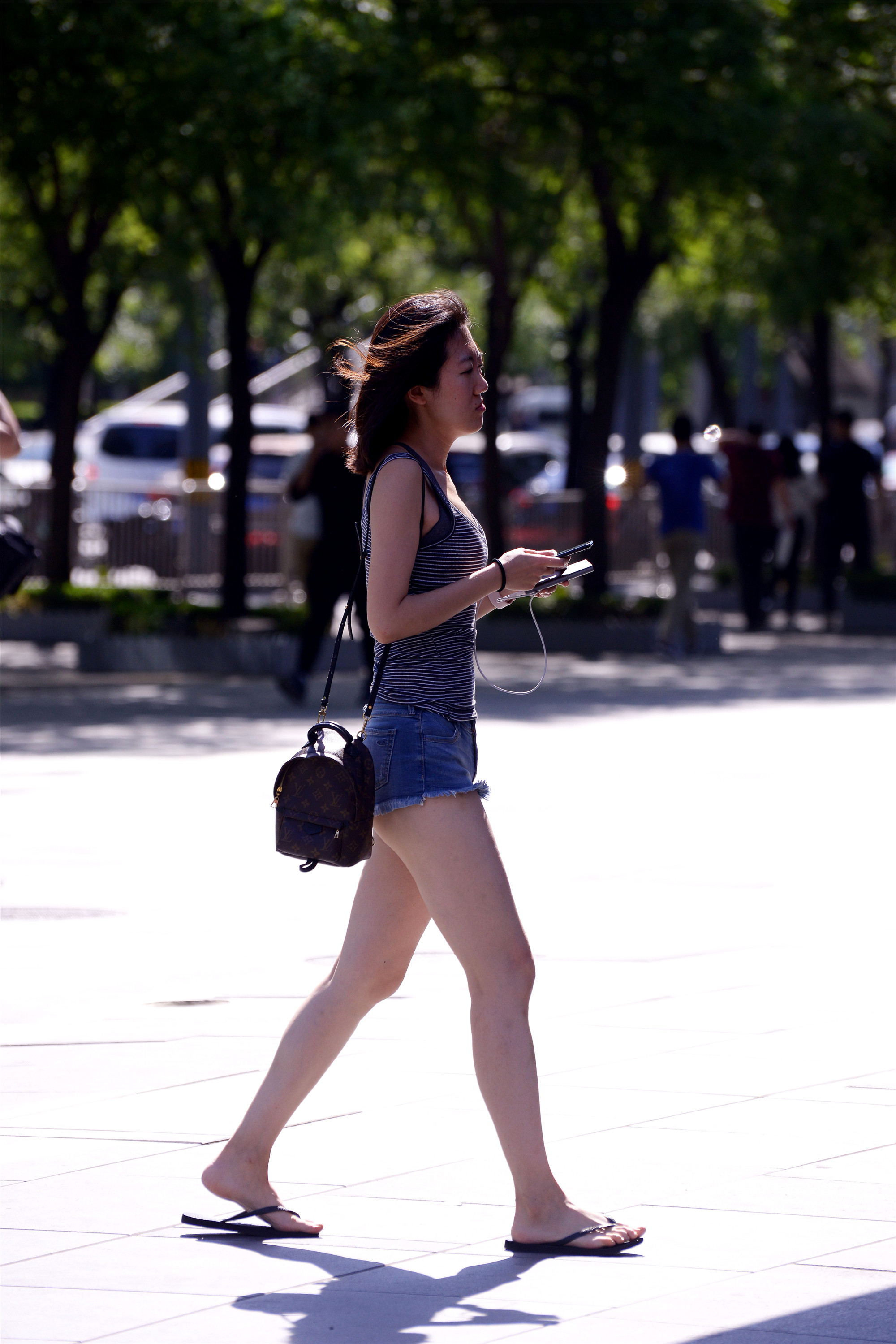 这位小姐姐,单纯的味逛街而来,看她脚下的人字拖就可以看出来,牛仔短裤搭配的背心出行,简约的风格,却又很好的展示出自己的身材。
