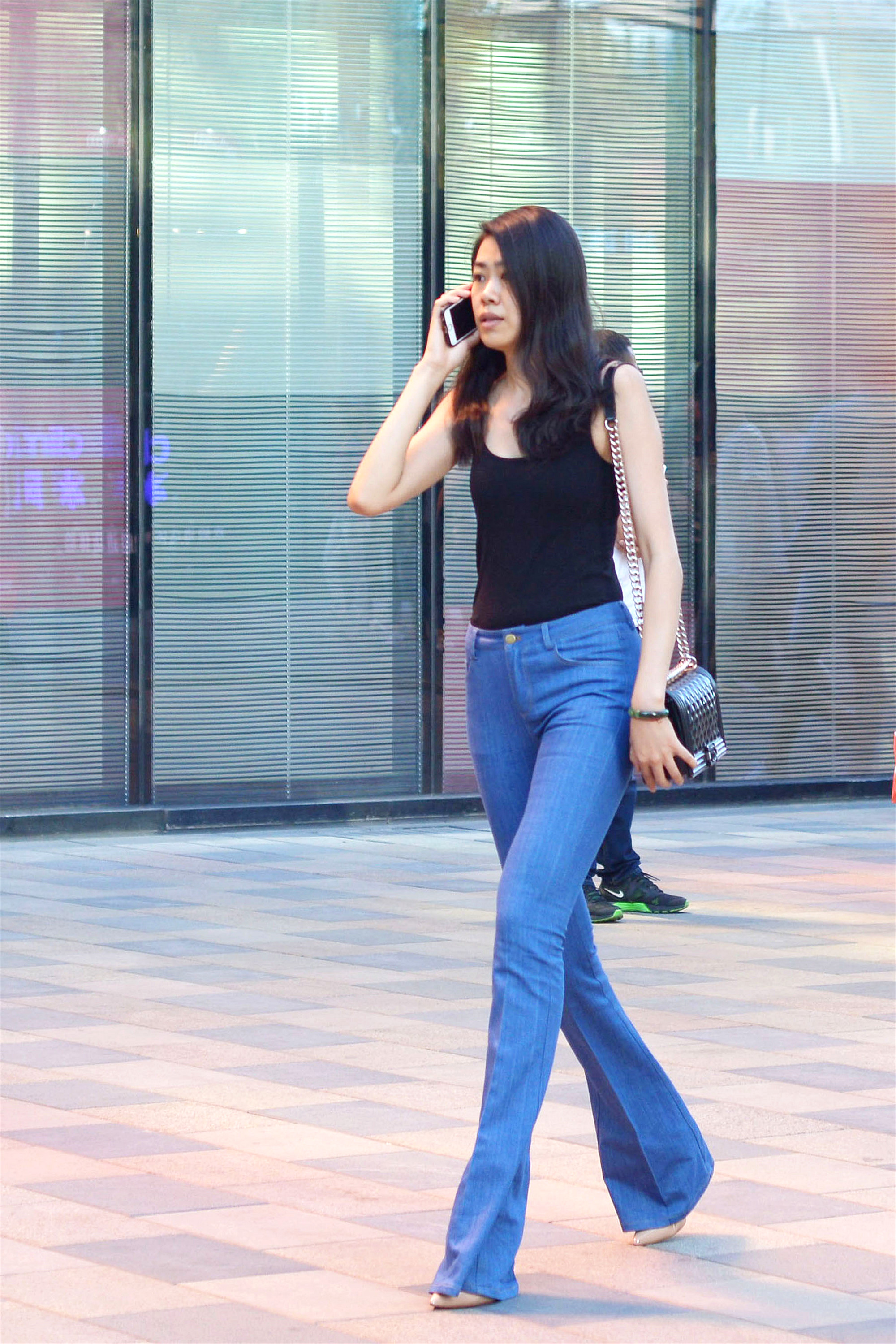 长一点的牛仔裤需要一双一字带高跟鞋才能衬托出她的身材来,而且很好的显出臀部美感,姐姐也是很会选衣服的,高高的腰身,让身材比例看起来更好。