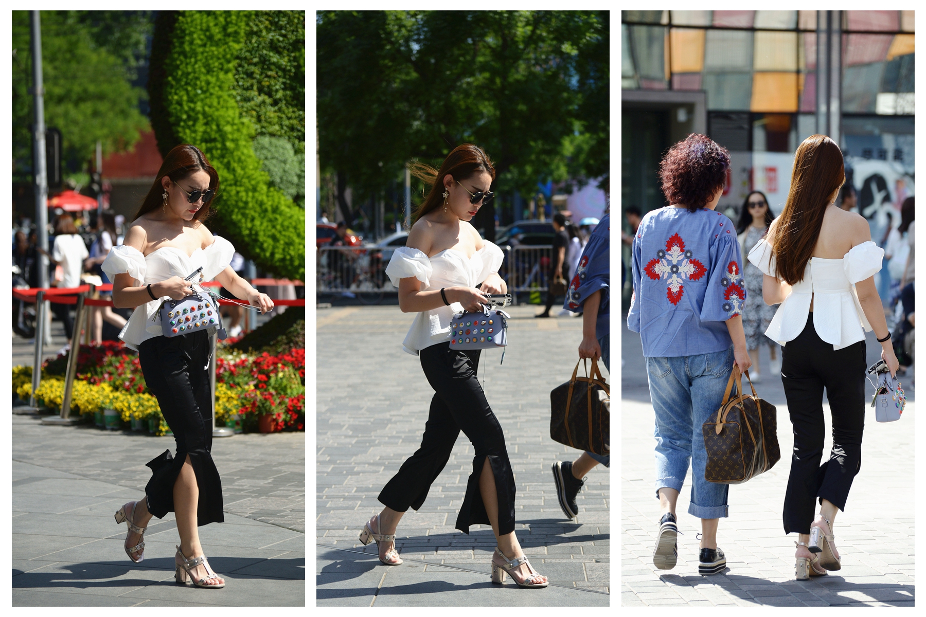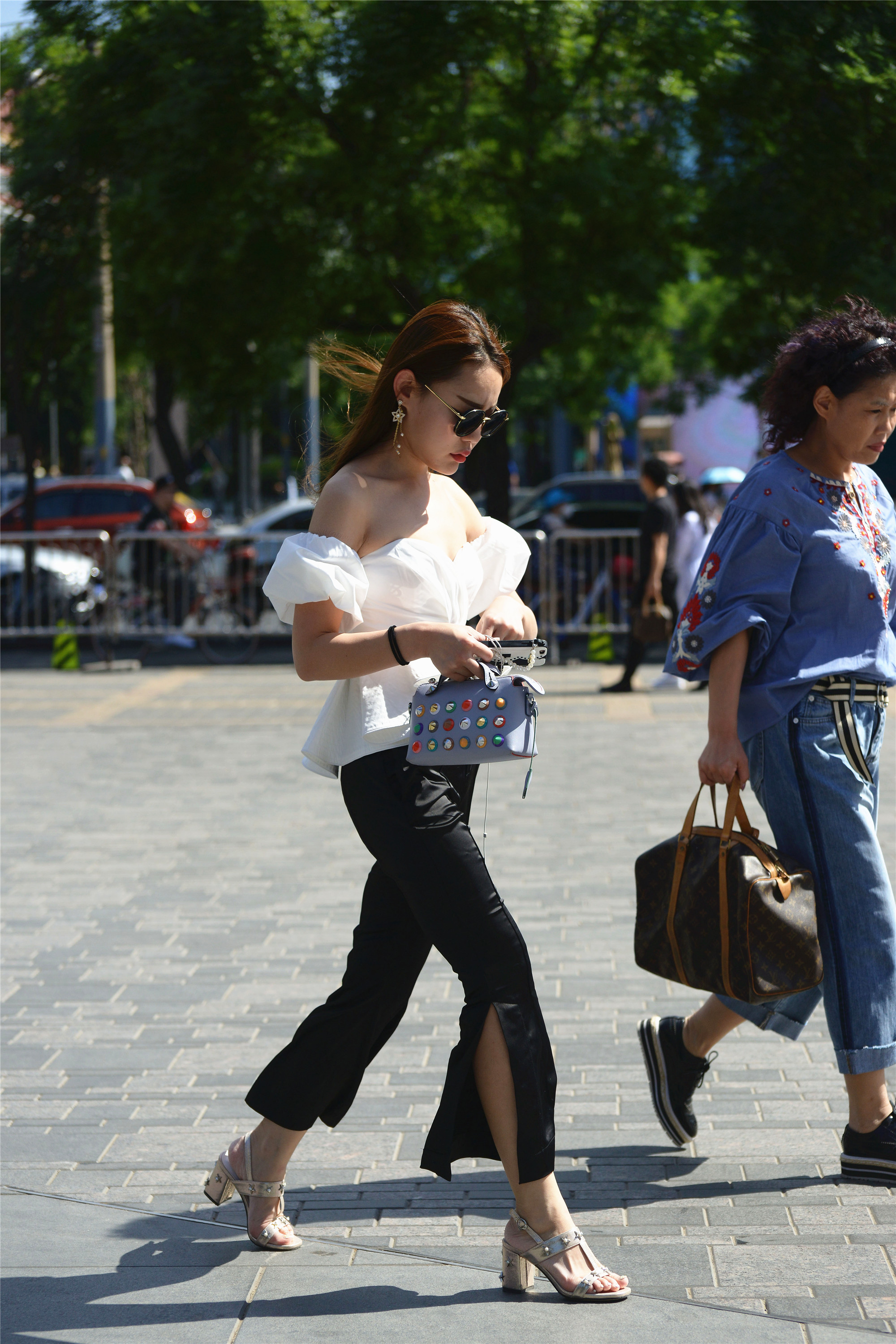 喜欢搭配的姑娘,她们都会很注意自己的穿着,小姐姐这一身搭配很经典,手里的包包作为衬托,上面布满了打铆钉,增加层次感觉,不显得呆板。