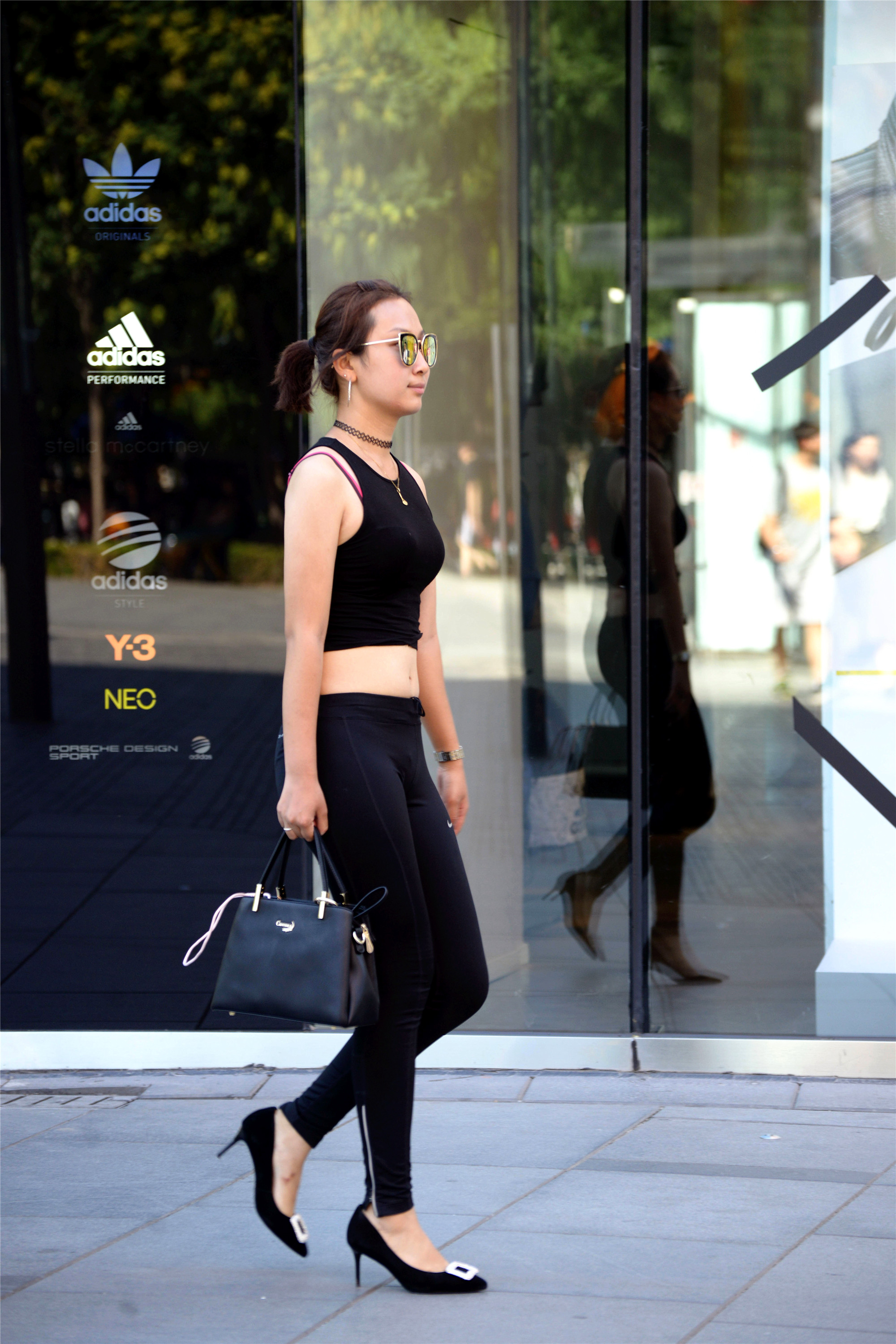 黑色很多人穿,却很少有人能够搭配出自己的个性来,这位姐姐通过紧身搭配和露脐装的实际,一双尖头细跟鞋,这样就显出很不错的时尚感觉。