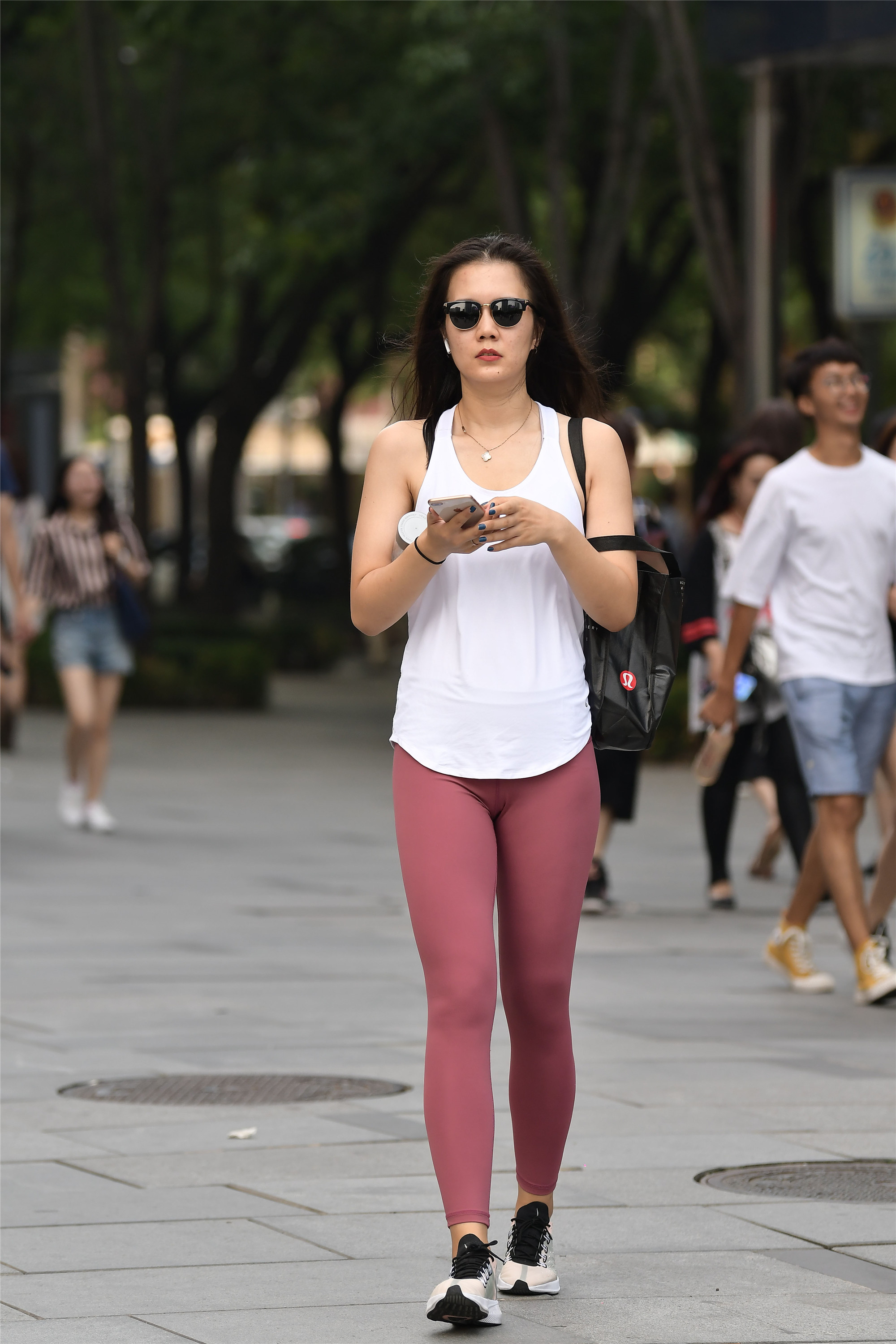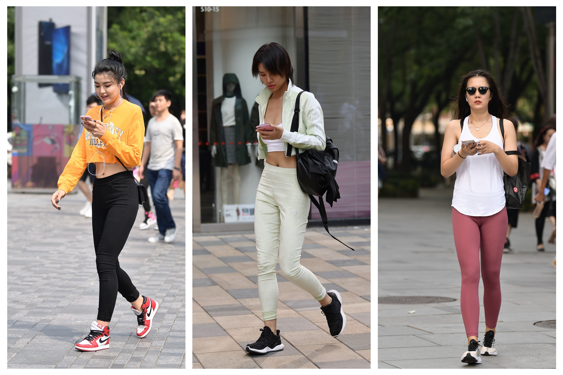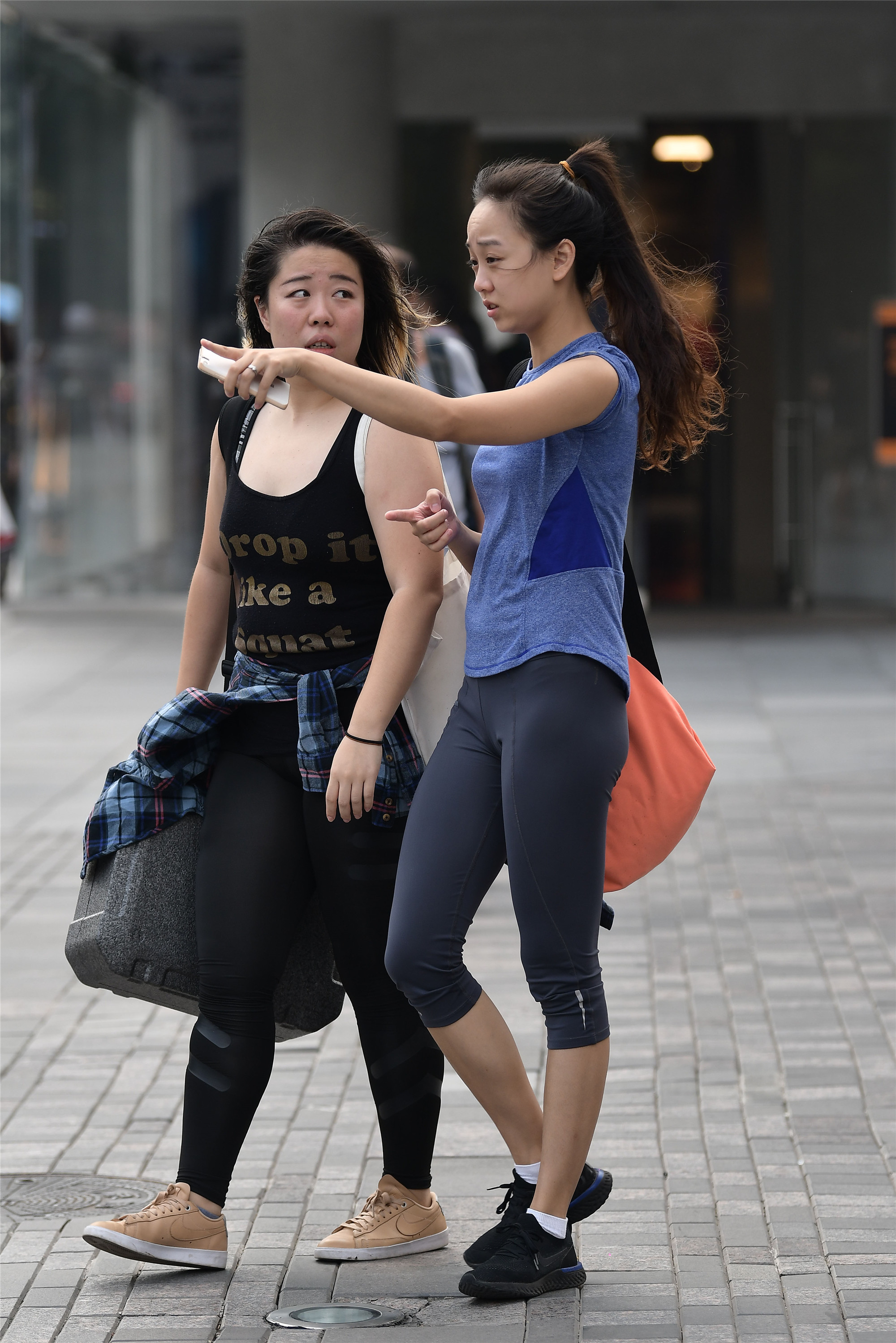穿着瑜伽打底裤的姑娘,她们是要去健身还是来逛街?