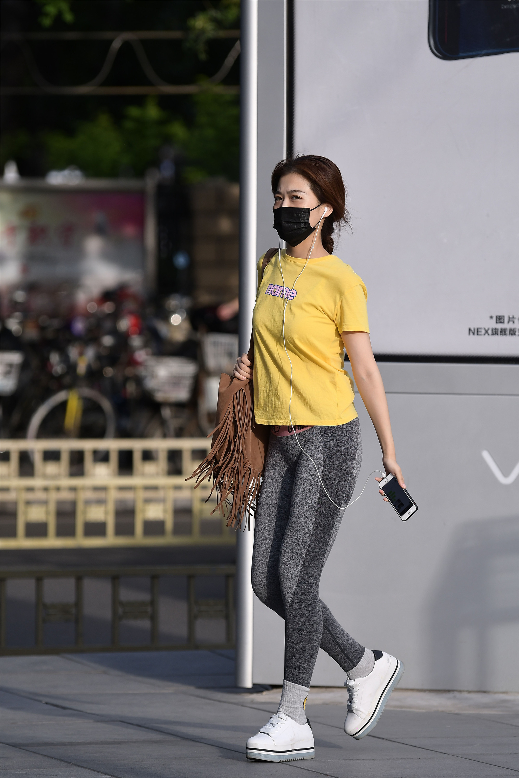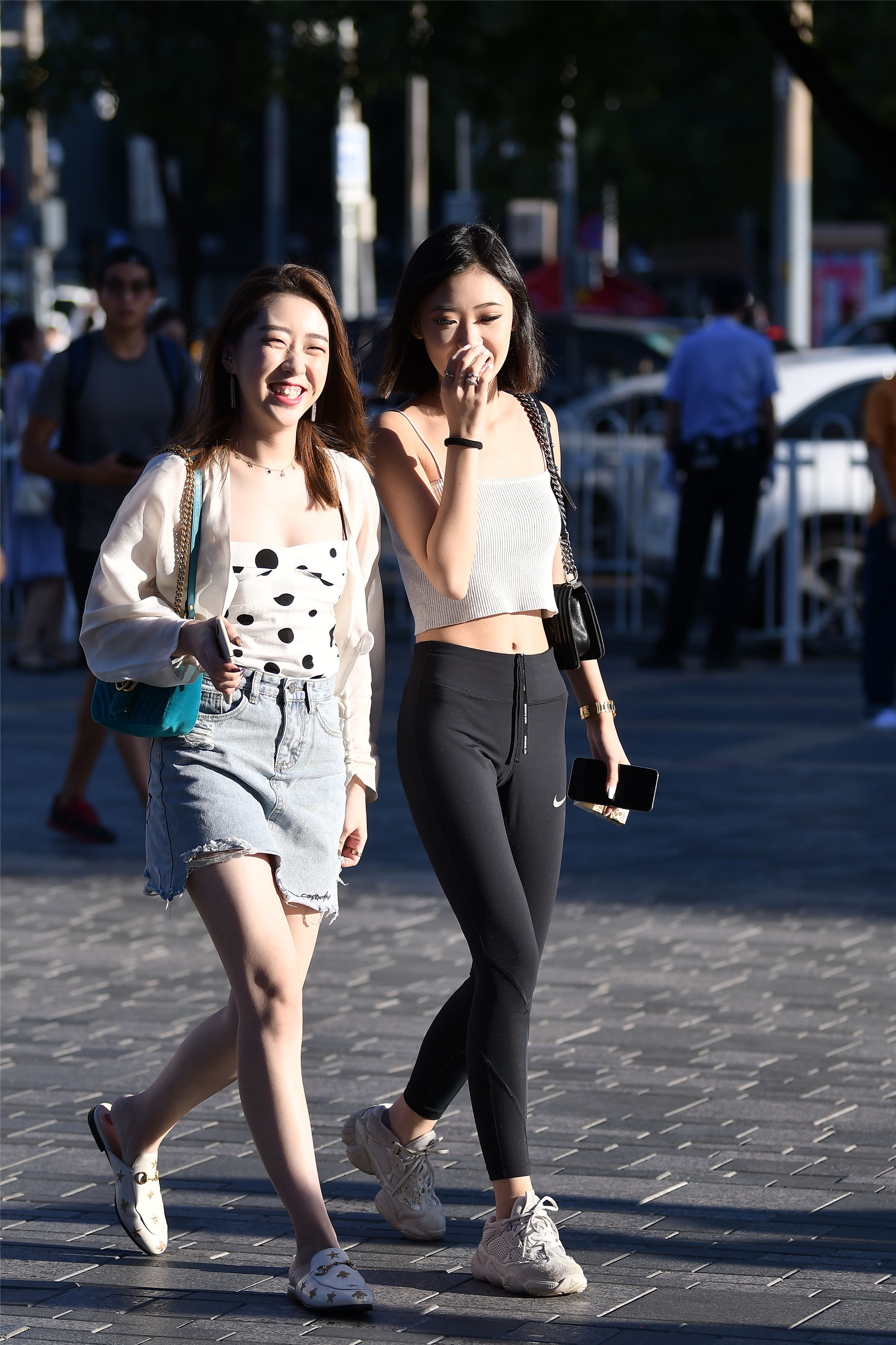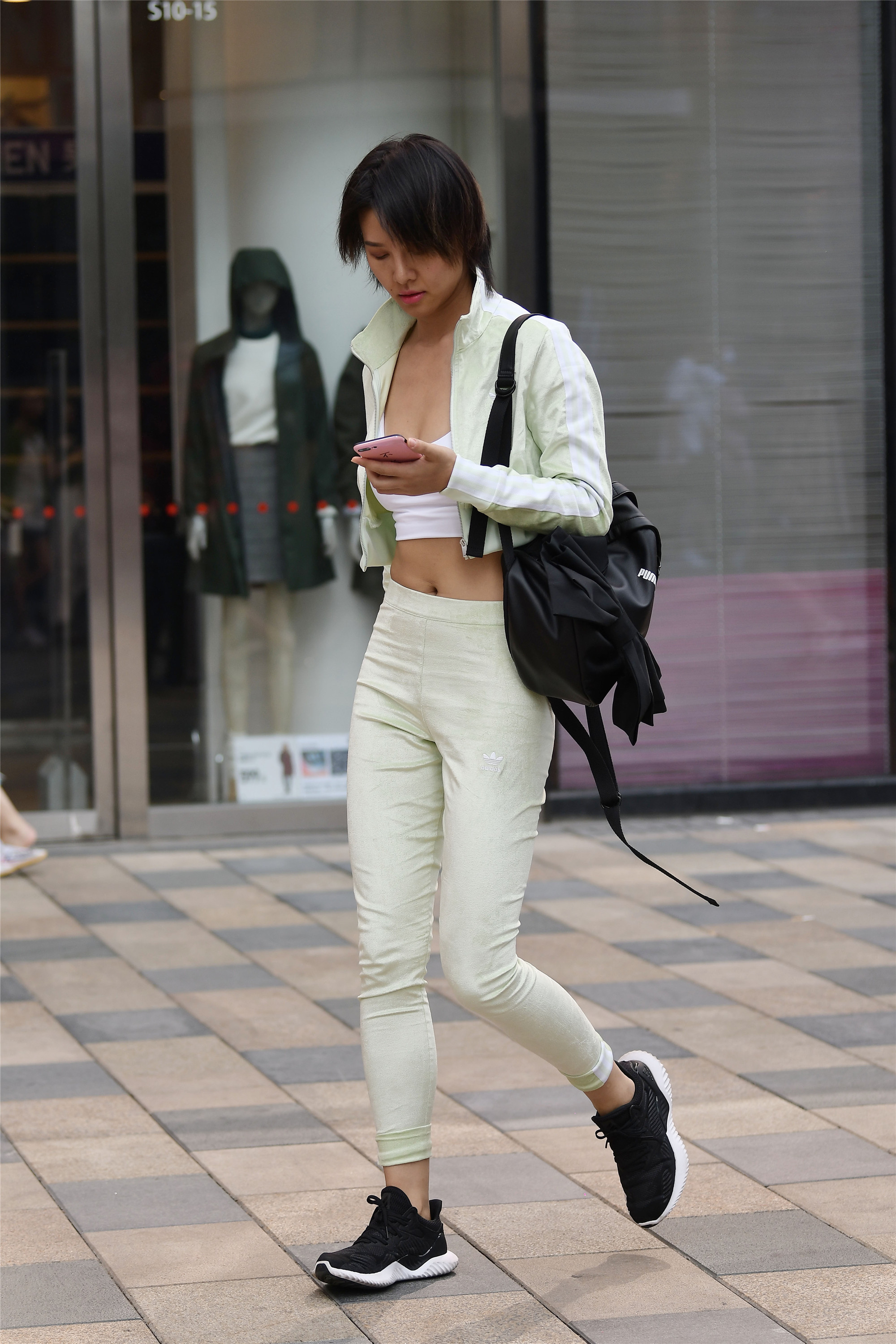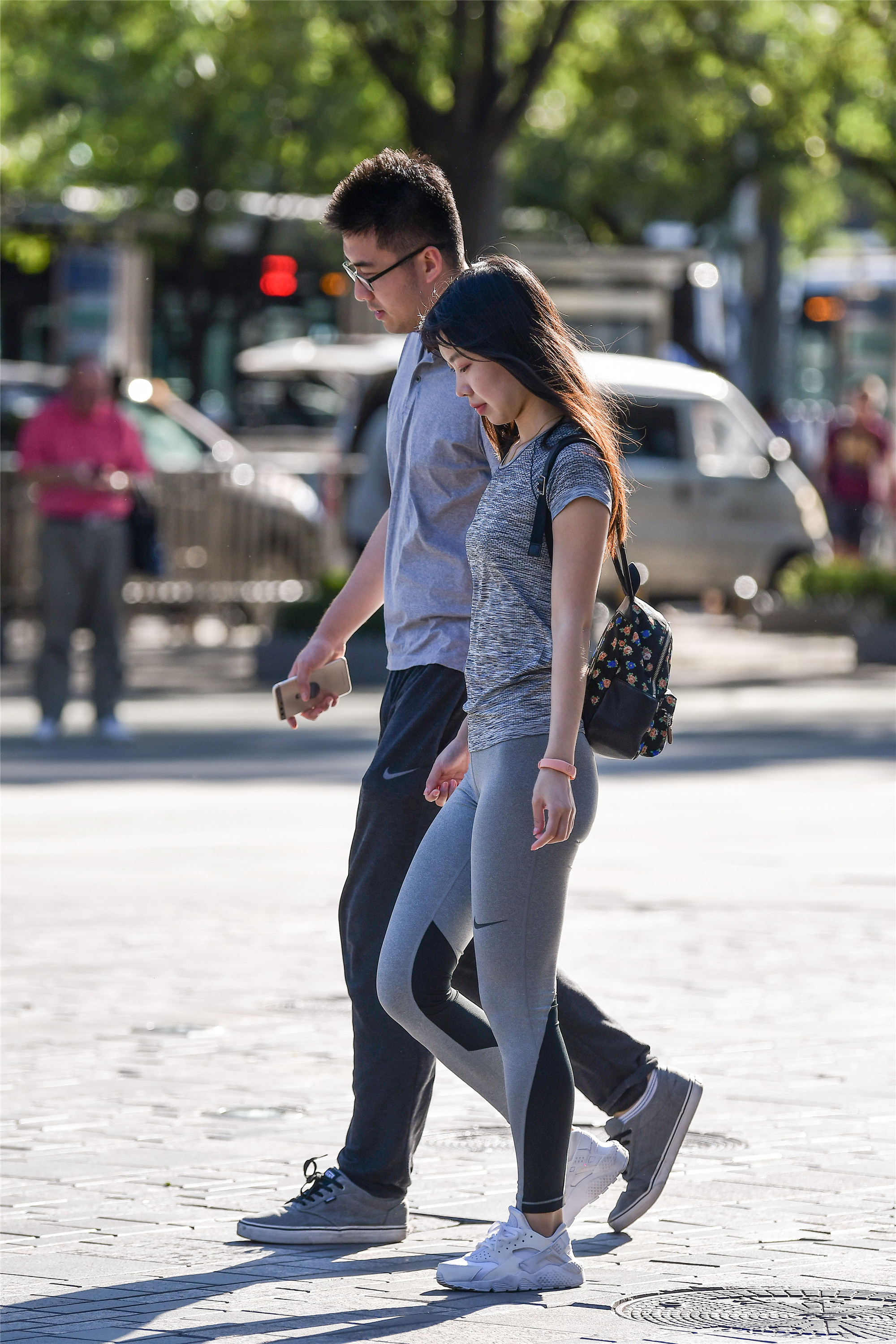 穿着瑜伽打底裤的姑娘,她们是要去健身还是来逛街?