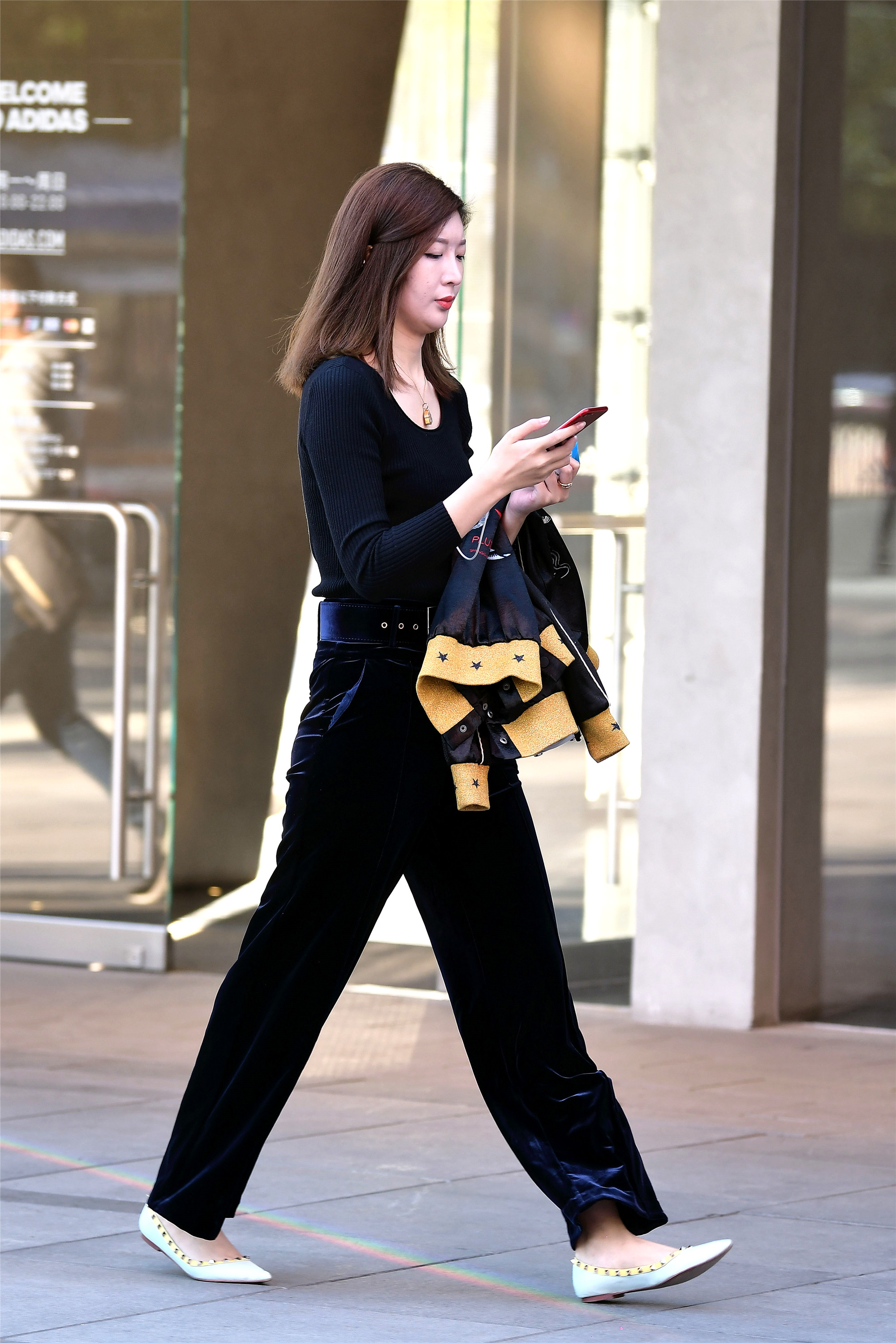长裤展示身材,也可以秀身材比例,秋天才可以看到这样的搭配