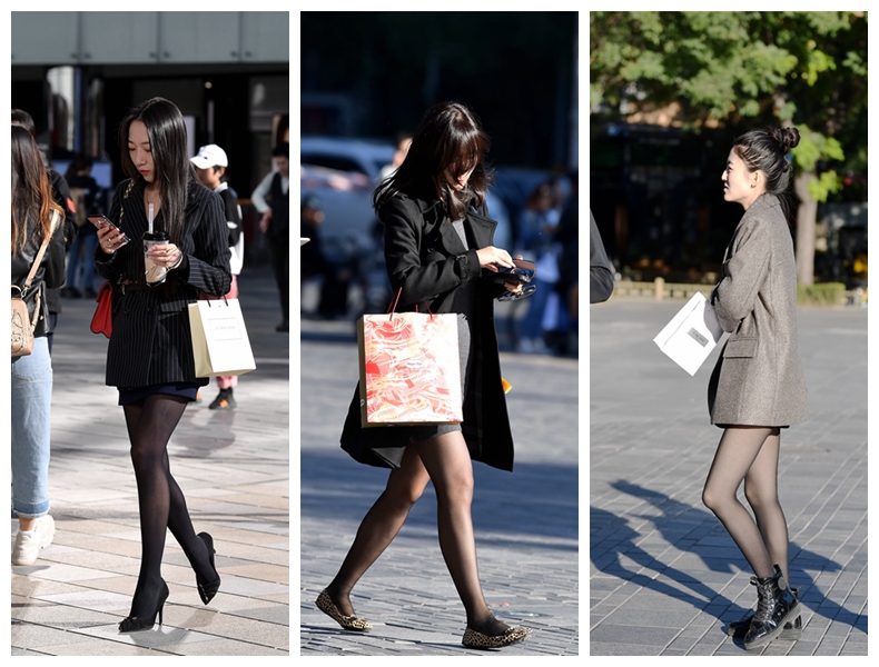 秋天应该有秋的味道,这几天北京的树叶也开始掉落了,秋天的时尚姑娘,也开始了秋装的搭配,这也是乱穿衣的季节,不热,也不太冷,所以可以在这个时节看到一年四季的搭配,黑丝作为经典的搭配,在这深秋的时候,穿着出门似乎是恰到好处。