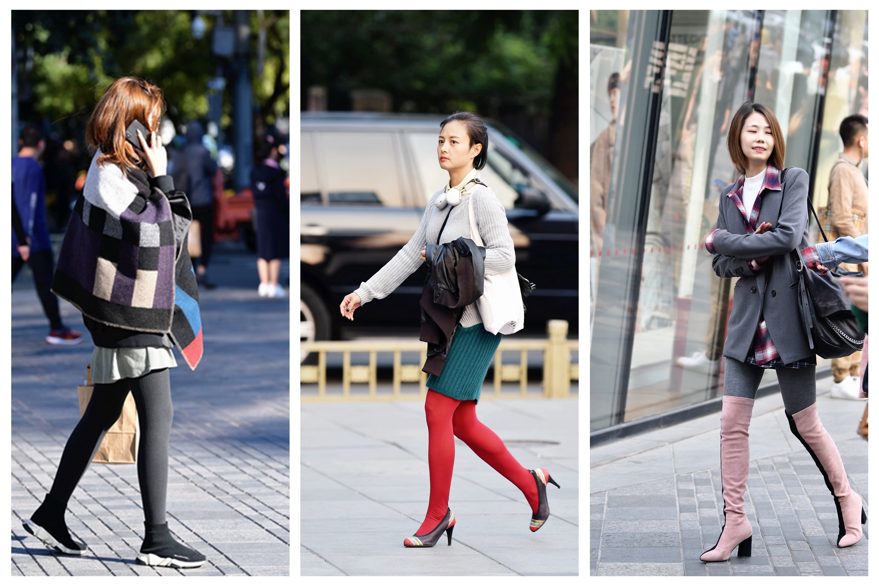深秋时节,那些穿着打底裤的姑娘,她们搭配出了秋的层次美
