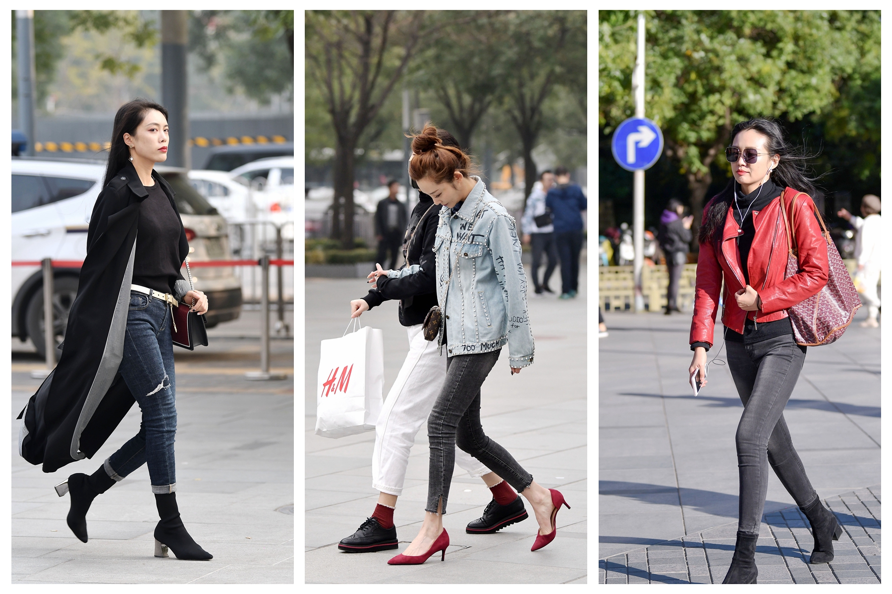 黑色修身牛仔裤,搭配一双马丁鞋,会有着小女生的味道,皮夹克会让她更有个性,而在秋天牛仔裤搭配皮夹克,是比较经典的搭配。