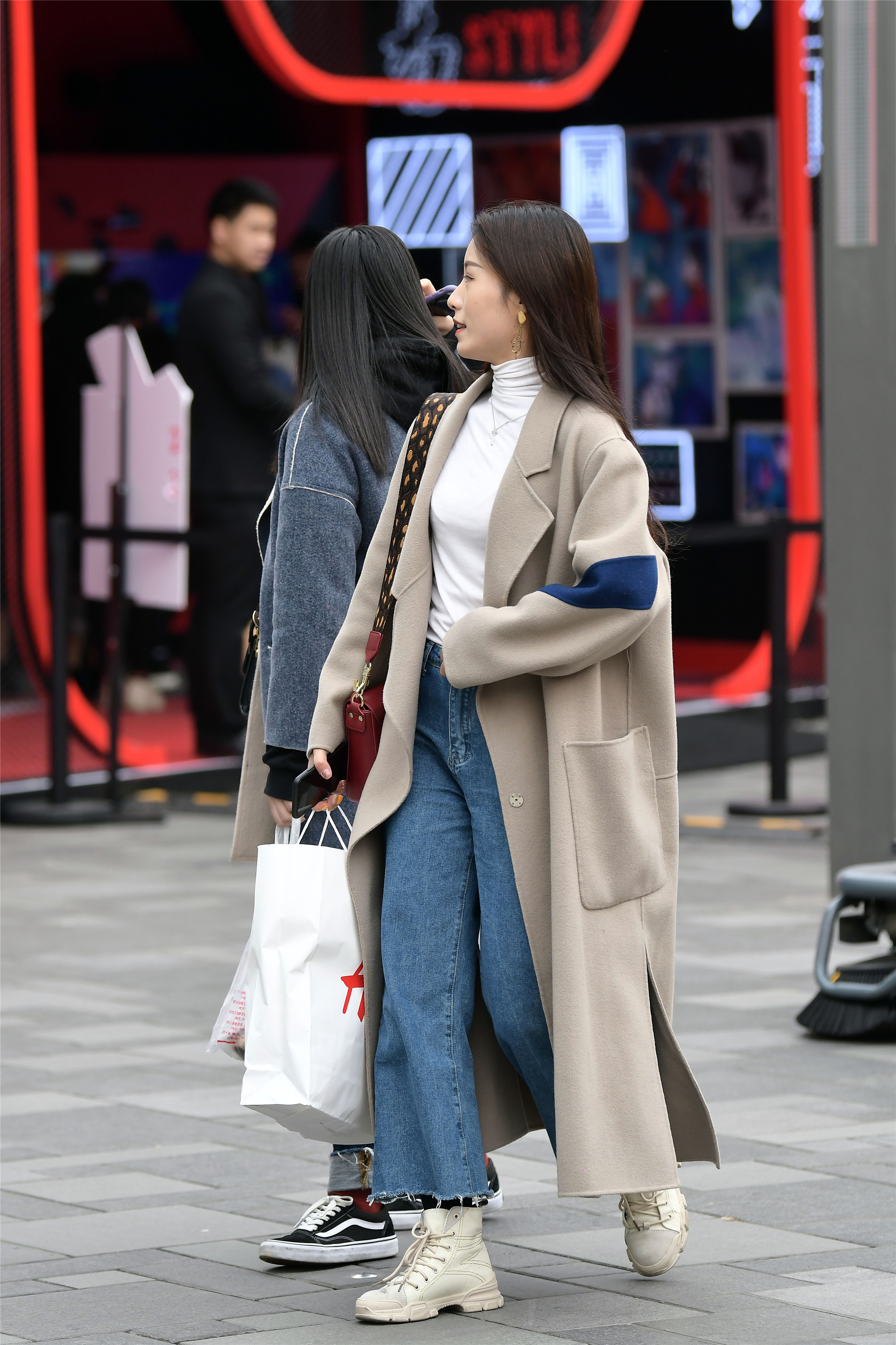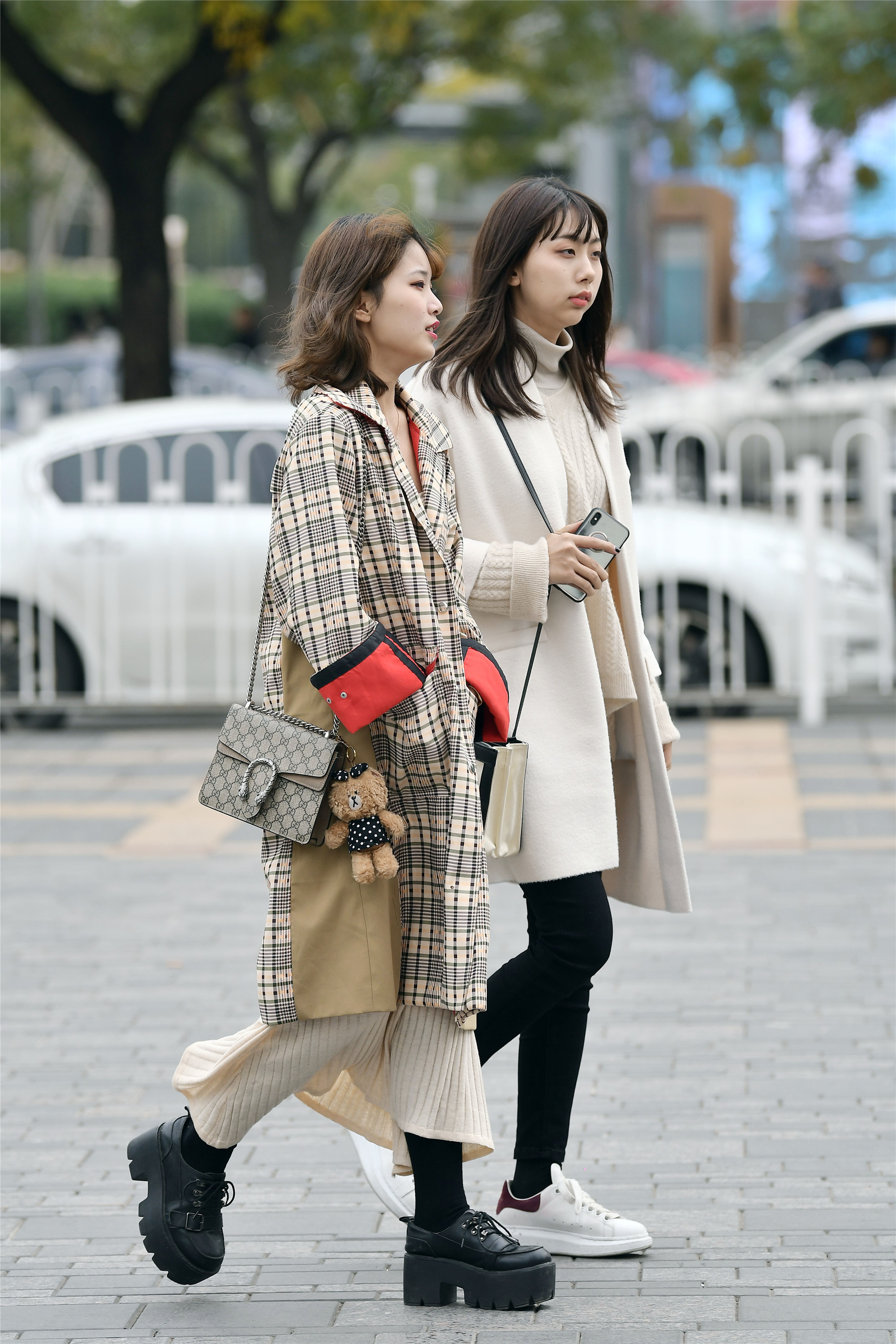 和闺蜜一起逛街,都要搭配一下,每个爱美的姑娘,都会有几件自己喜欢的衣服,所以出门逛街也要穿出来修一下,她们秋天选择风衣搭配,长款和短款,搭配出不一样的风格,却都很漂亮。