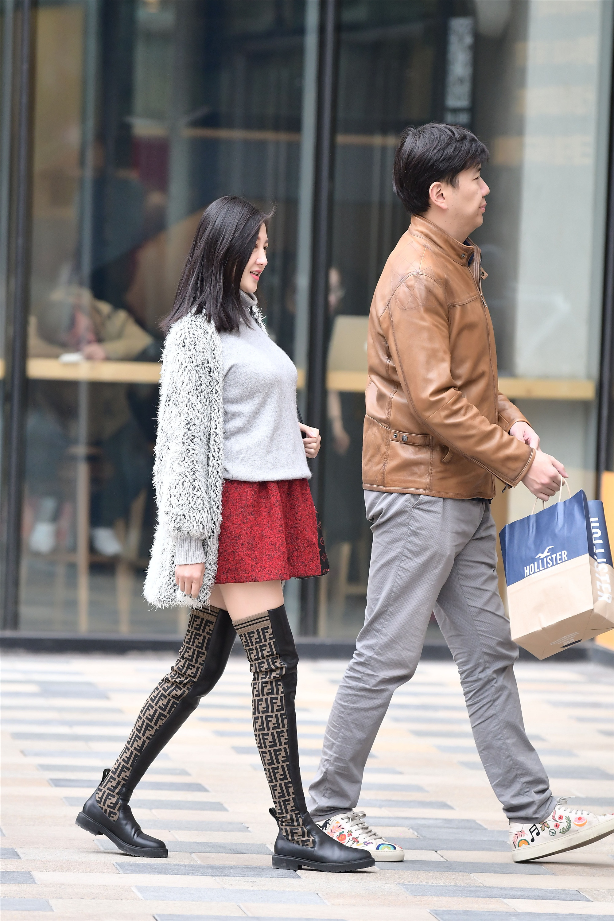 平底过膝靴穿得漂亮的姑娘,腿匀称修长才好