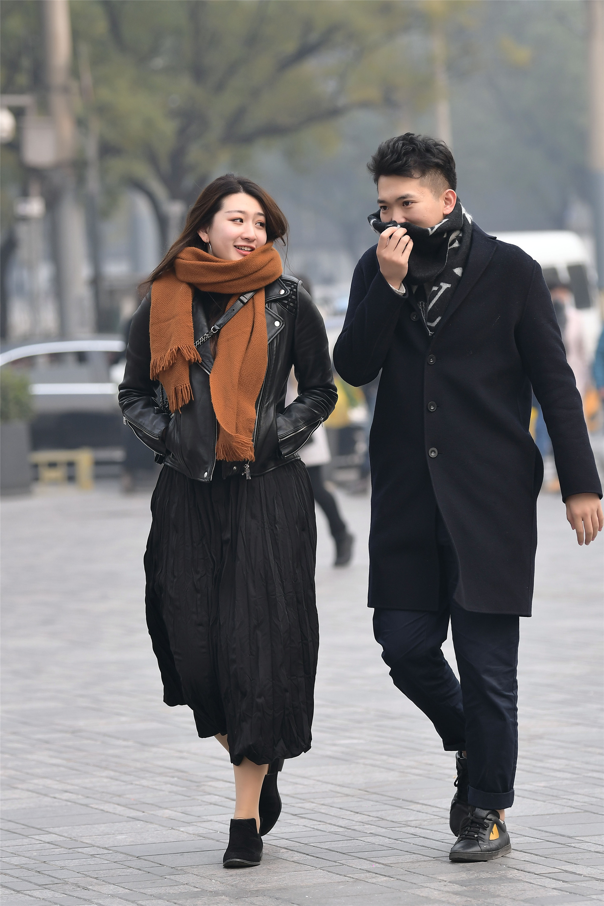深色系本就是到了秋冬时节的搭配,但是怎么搭配出精彩来,却需要你去选择,这位小姐姐没有让自己的搭配显得苗条纤细,但是看了之后你依旧觉得很精彩,皮夹克搭配一条蓬松的压褶长裙,一条打底裤护住自己的腿部不冷,深棕色的围巾也将是严严实实的,这样一身显得很可爱。