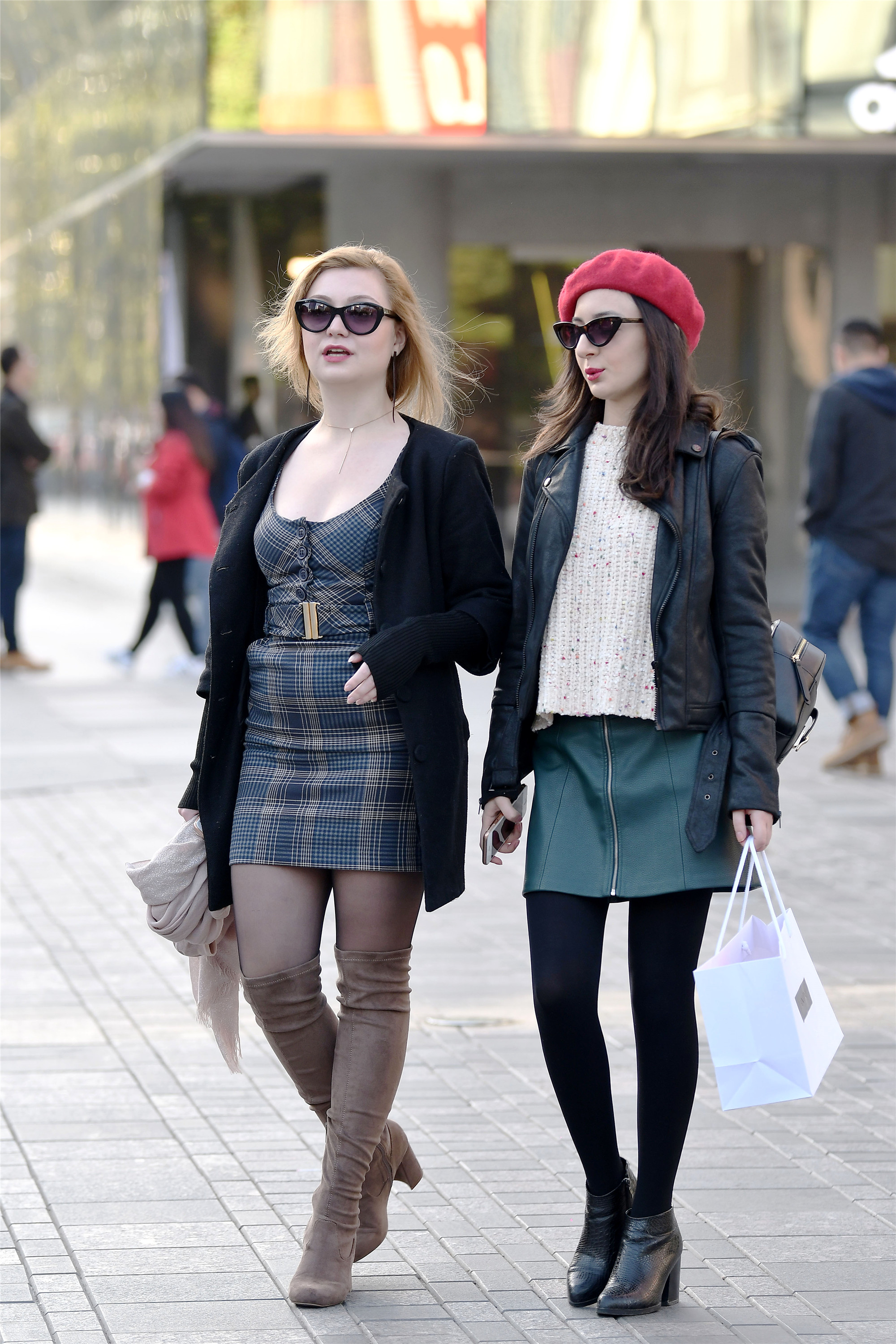 没有丑女人,只有懒女人,如果你经常出入时尚街区,你会发现,这句话是对的,人家健身,学习搭配,饮食上也很注意的时候,你在做什么呢?这一对姐妹,黑丝袜和灰色高筒靴搭配,格子修身连衣裙,效果很不错,外面一件黑色呢子大衣。
