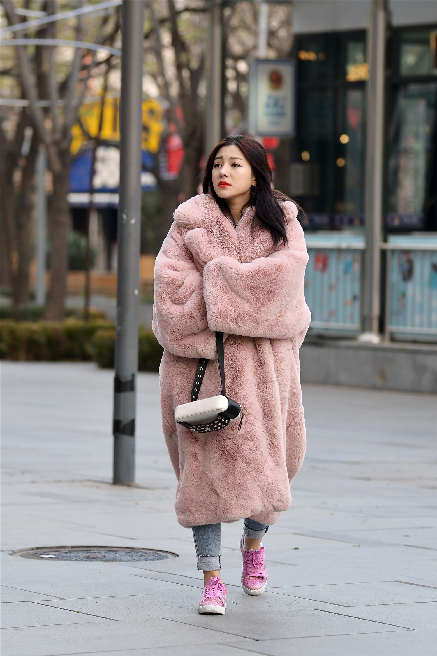 这一款藕粉色仿皮草大衣,很个性,带着皮草的感觉,保暖性也非常好,而且非常舒适,秋冬时节穿着这样色彩出门,感觉秋冬时节的色彩也不是那么的单调了,有了是时尚姑娘搭配出来的色彩,会让秋冬时节更精彩。