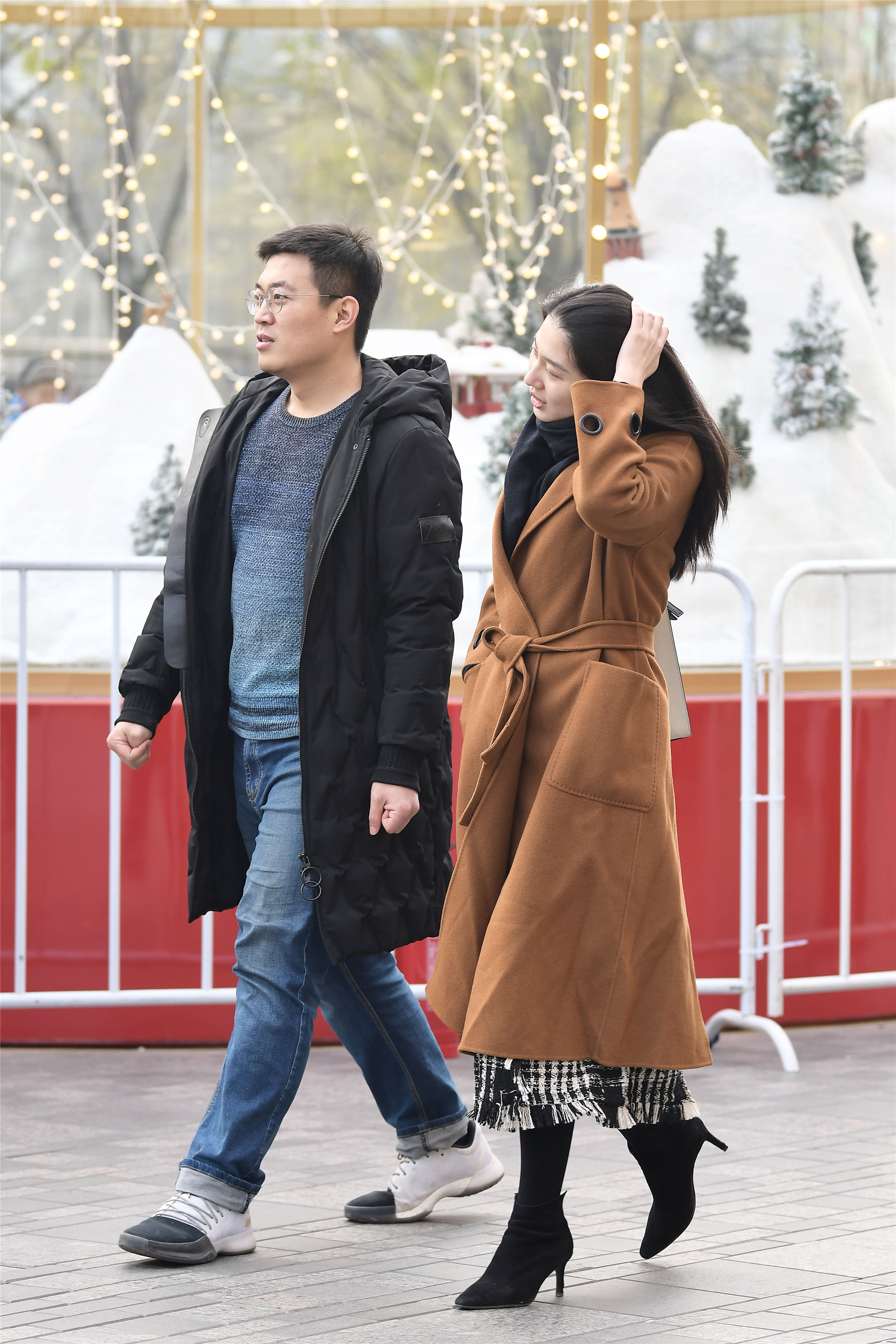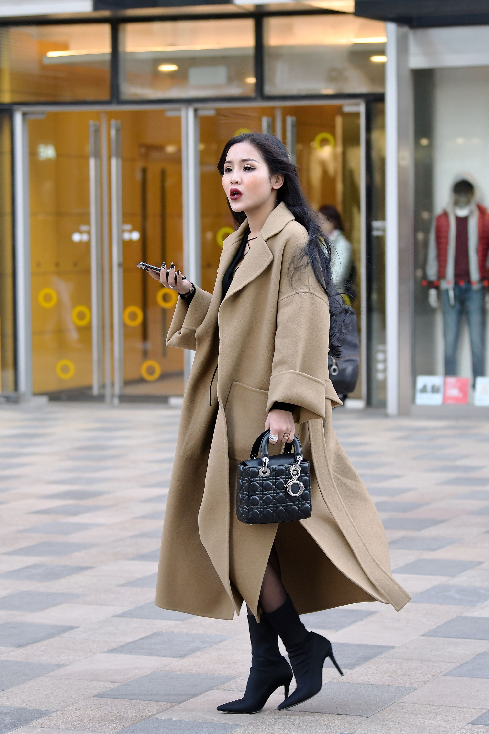 棕色的毛呢大衣,搭配一条连衣裙,连衣裙虽然只露出一点点边缘,但是看起来还是很漂亮,一双尖头细跟短靴,和打底裤搭配在一起,显得小腿纤细修长,也凸显出姑娘身材的高挑。