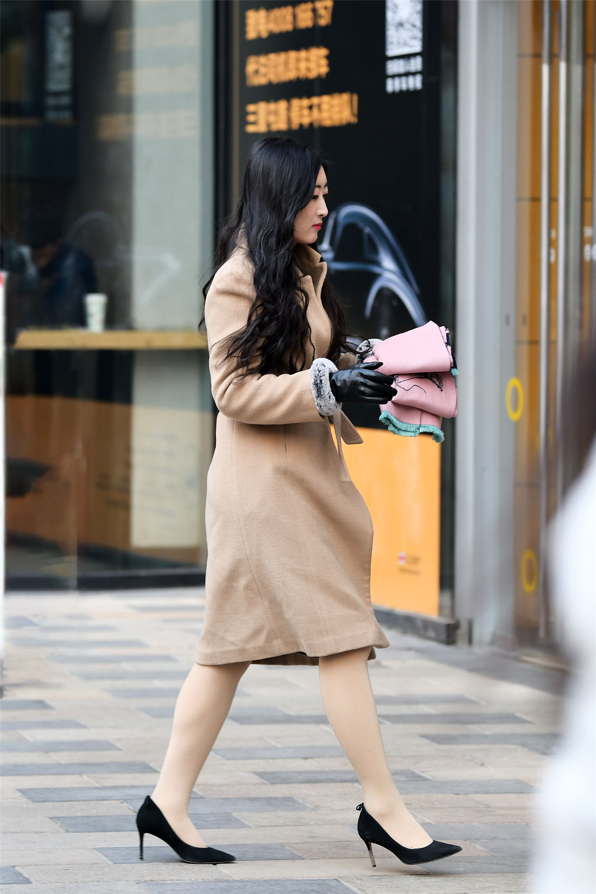 到了冬季还感穿着尖头细跟单鞋的,绝对是不怕冷而且对这款鞋子非常喜欢的,虽然穿着加厚的打底裤,但是感觉还是会有点冷的感觉,及膝的风衣,搭配一双黑色皮手套,更显得个性。